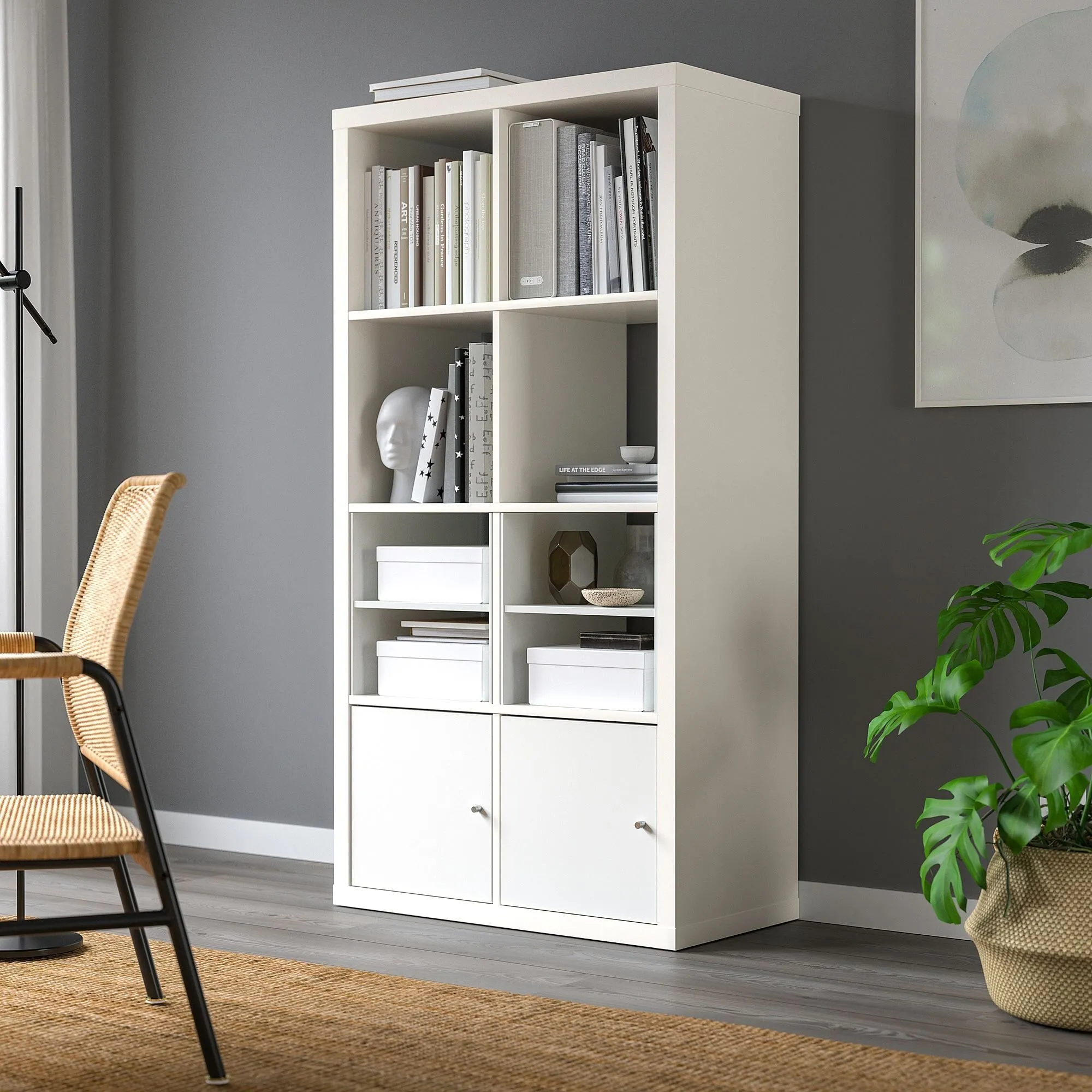 Поместите эту комбинацию КАЛЛАКС стоя или горизонтально в качестве буфета в зависимости от вашего пространства. Удобные вставки помогут поддерживать порядок в вещах.