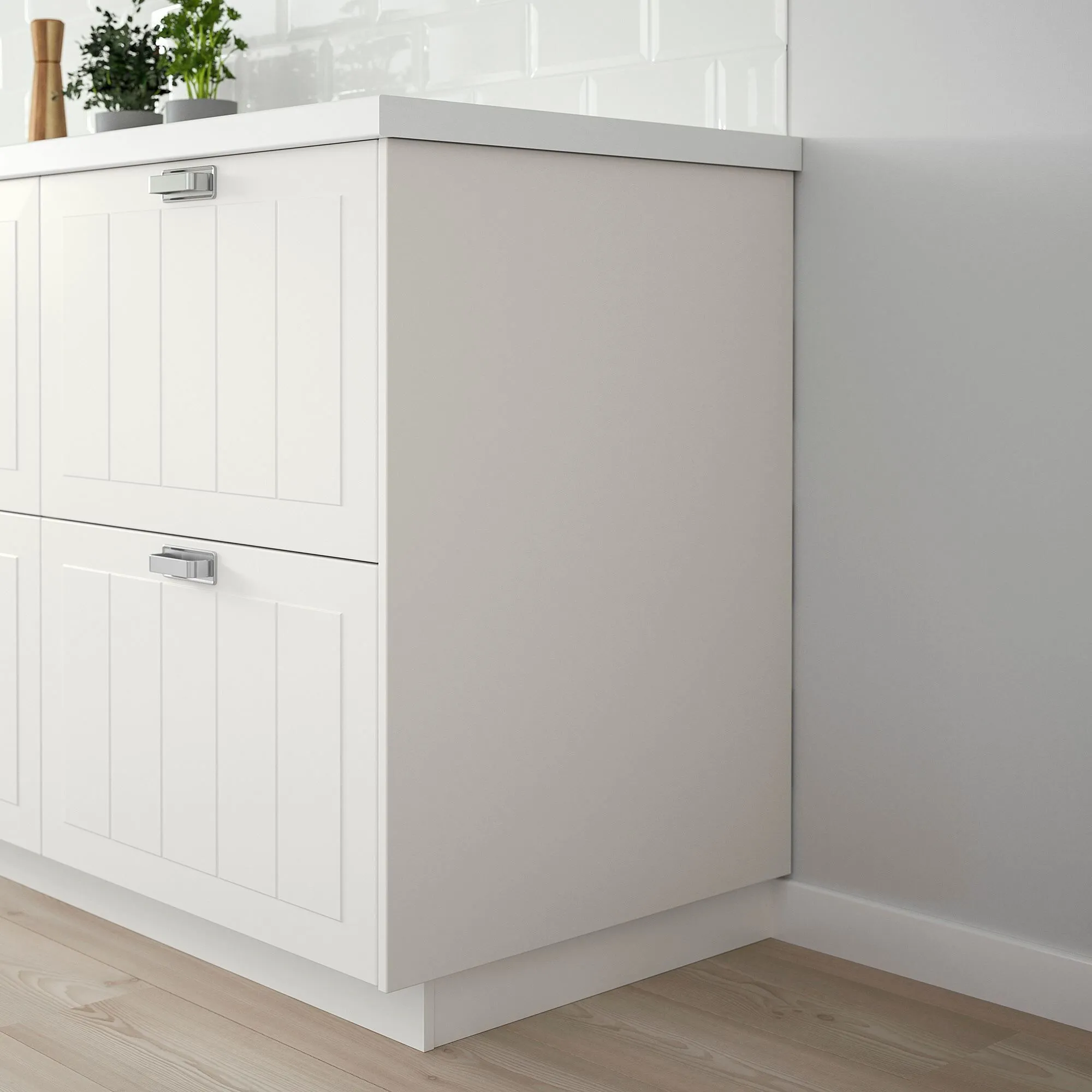 Эта накладная панель сочетается с дверцами и фасадами ящиков STENSUND белого цвета, идеально подчеркивая ощущение загородной жизни. Лакированная поверхность устойчива к пятнам и влаге и мгновенно вытирается.