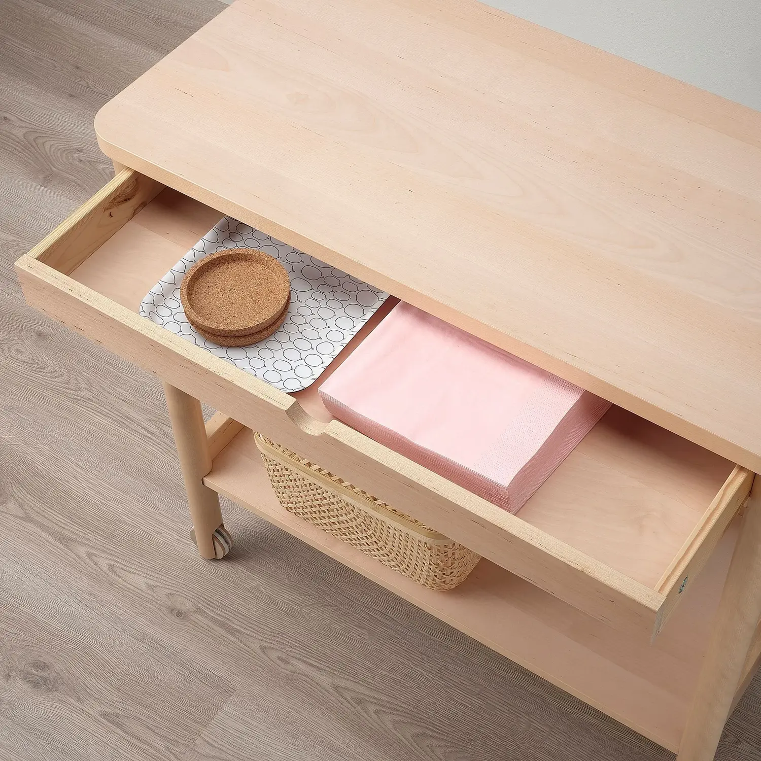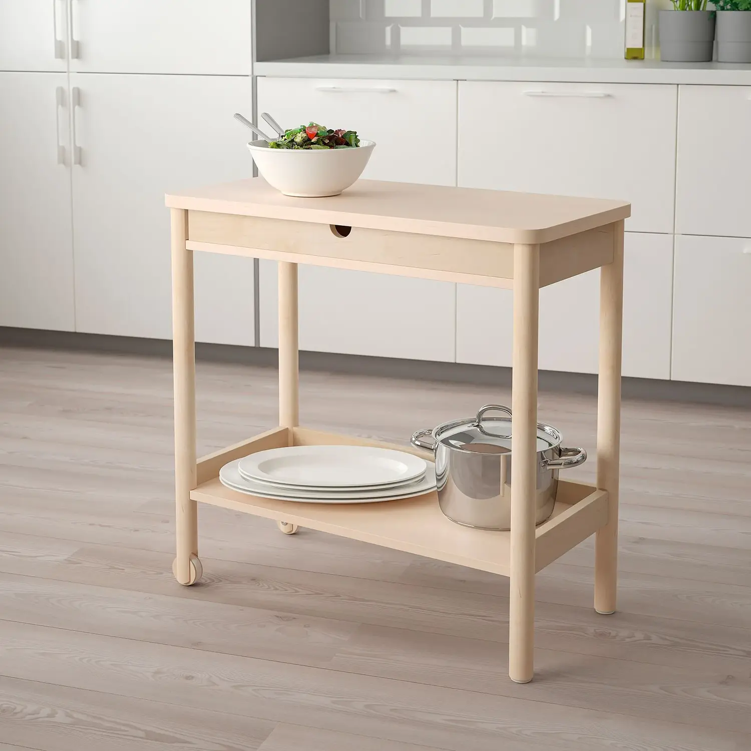 Тележка RÖNNINGE изготовлена из березы, что придает ей ощущение подлинности и износостойкую поверхность. они прослужат долгие годы и с возрастом станут более изящными.