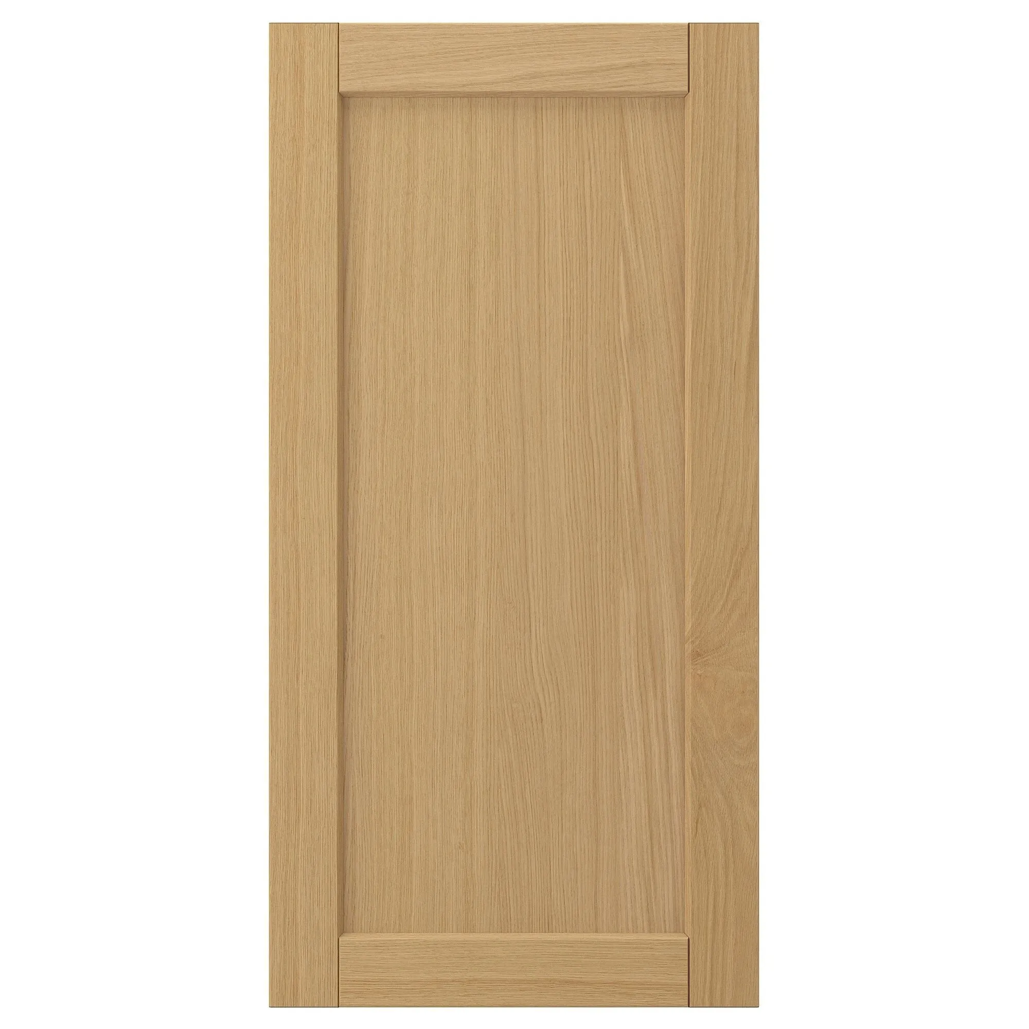 Кухонные фасады FORSBACKA из теплого дубового шпона приветствуют вас и заставляют чувствовать себя как дома. Дверь в рамке со скошенными краями создает классический, традиционный характер.
