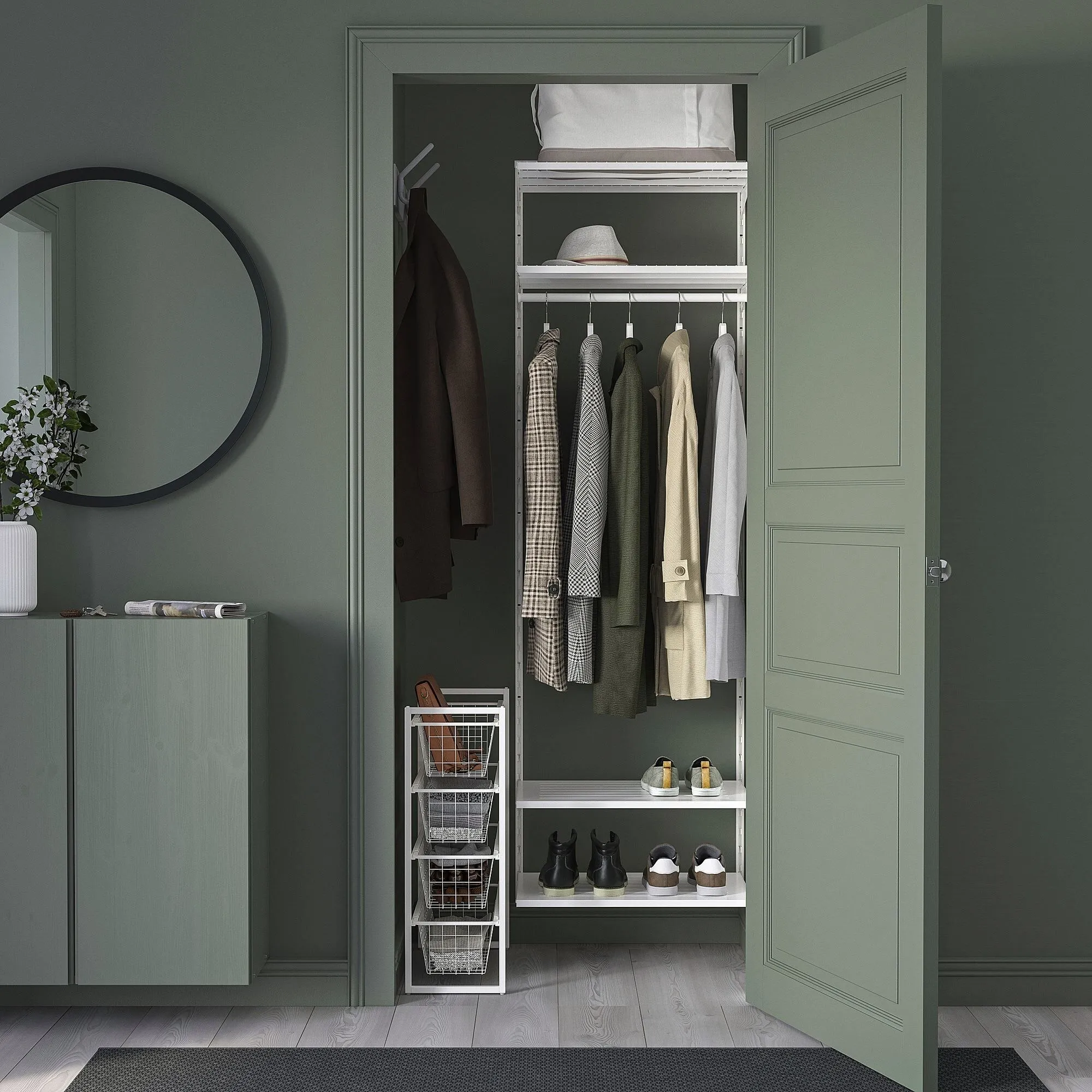 Практическая комбинация для хранения вещей, которая поможет вам поддерживать порядок в доме, в том числе во влажных помещениях, таких как ванные комнаты.