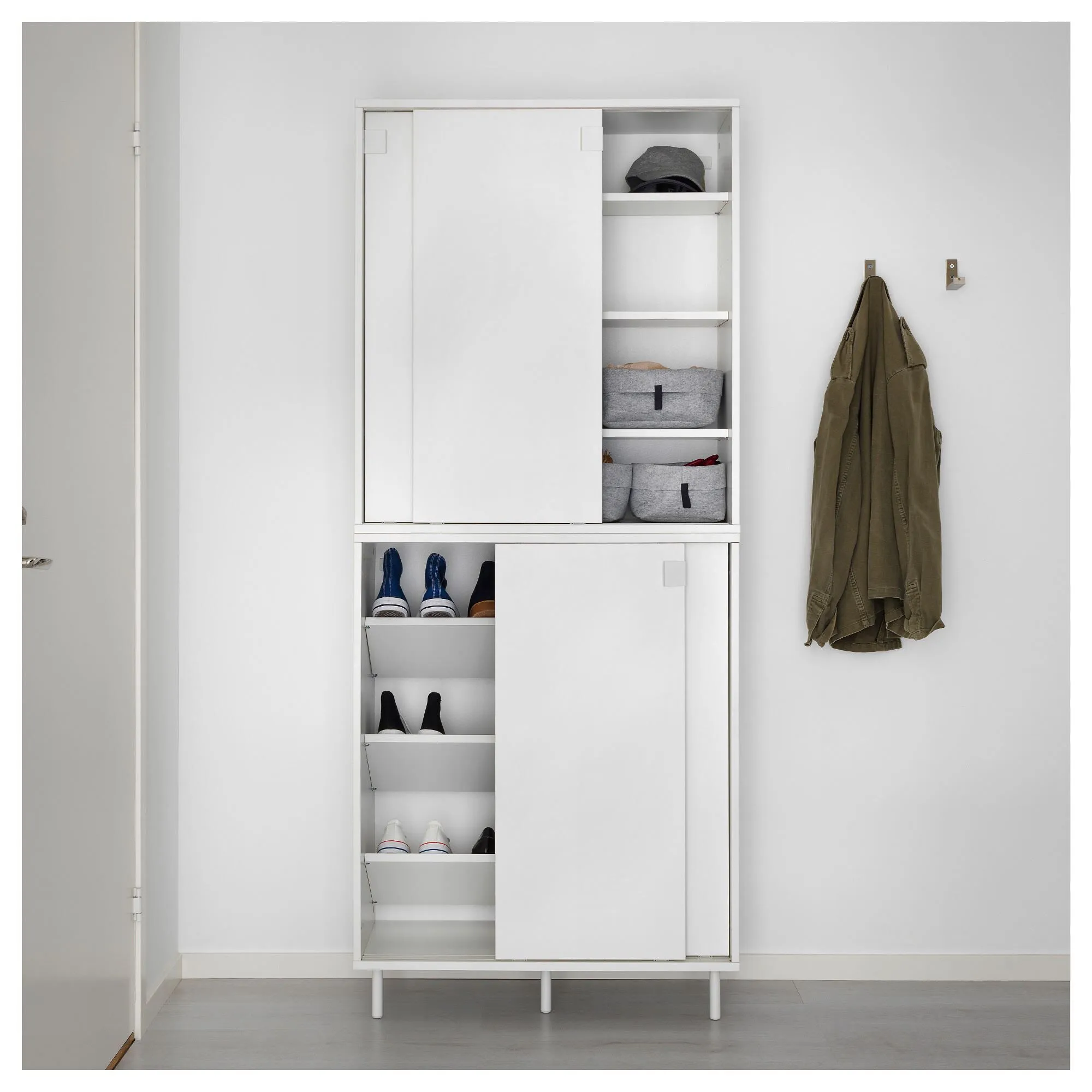 Если вам нужно больше места для хранения, вы можете разместить еще один шкаф поверх первого.