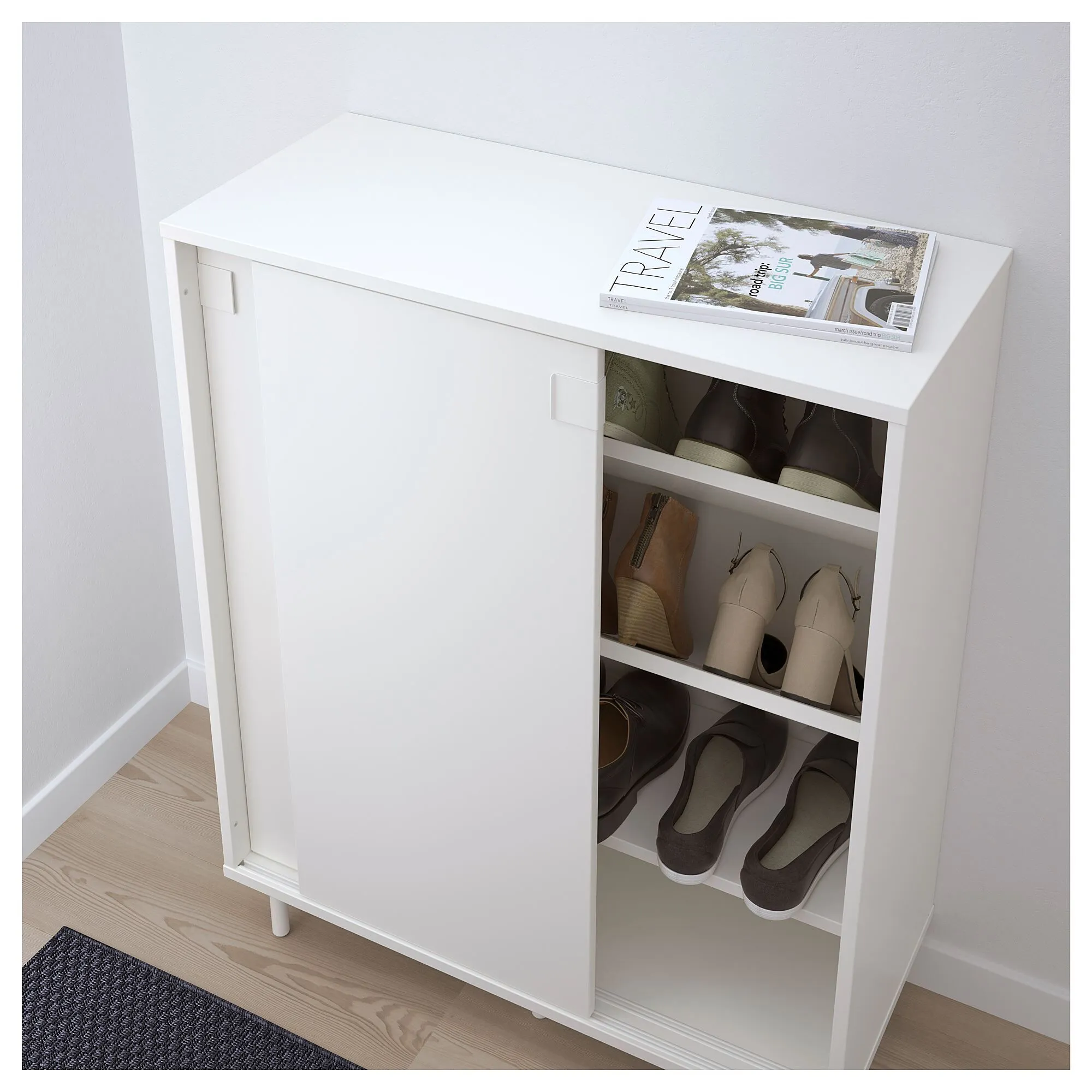 Полки можно установить ровно или под углом, чтобы их можно было адаптировать к размер обуви, которую вы храните.