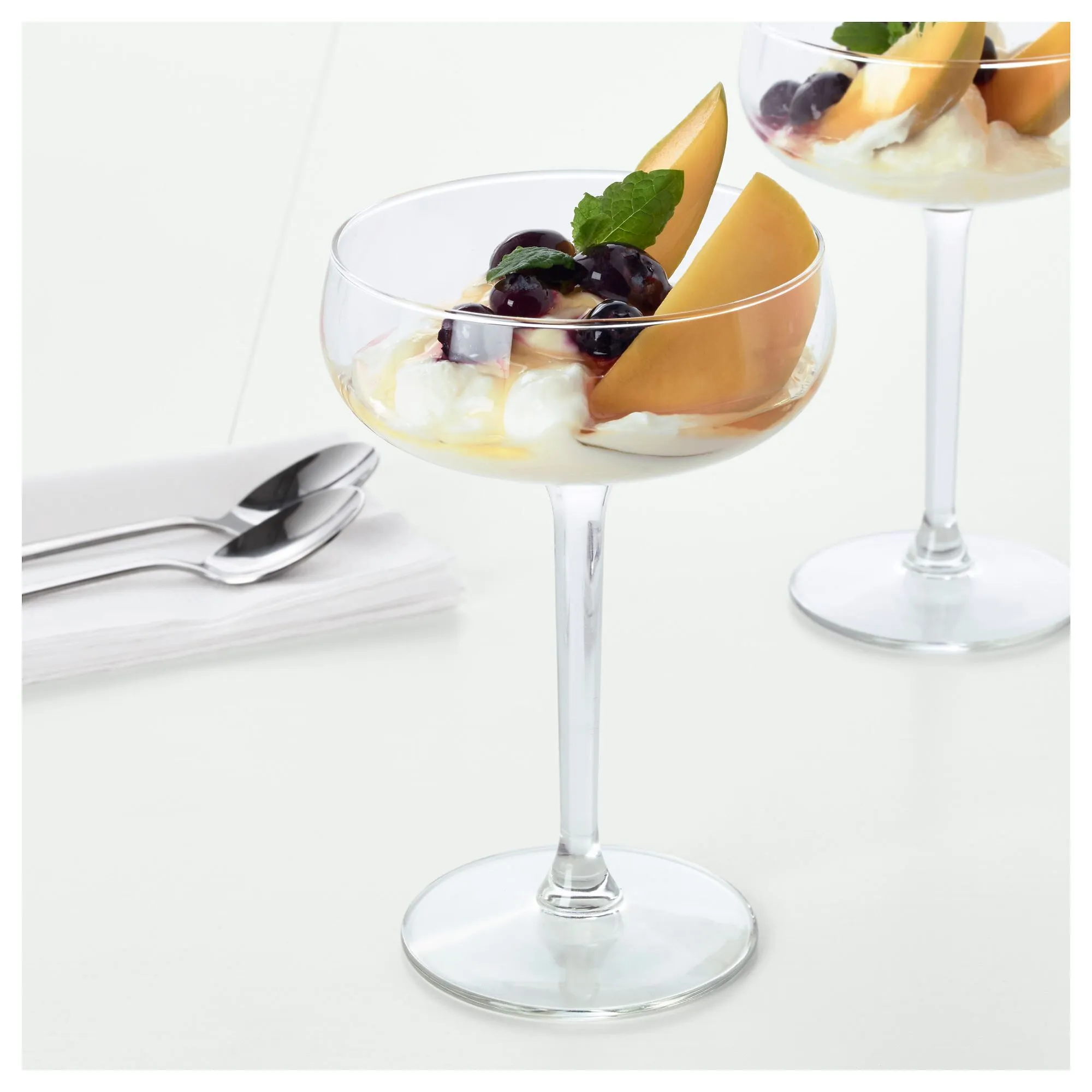 Бокал имеет широкую форму, что позволяет использовать его и как чашу. для подачи вкусных десертов.