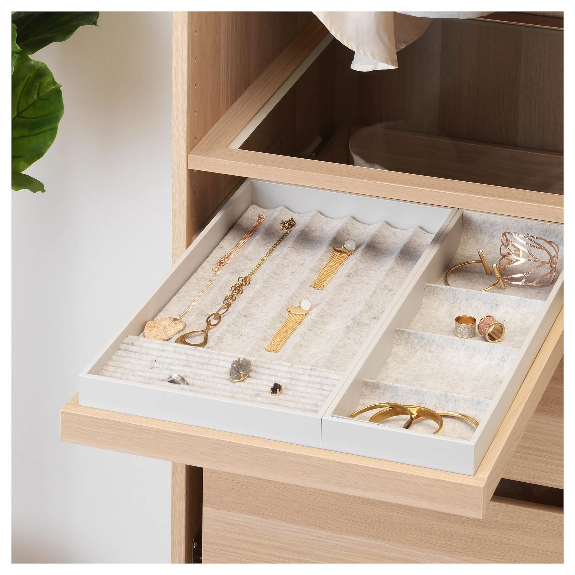 Вставка помогает хранить и систематизировать ожерелья, кольца, серьги и другие аксессуары, такие как солнцезащитные очки и часы.