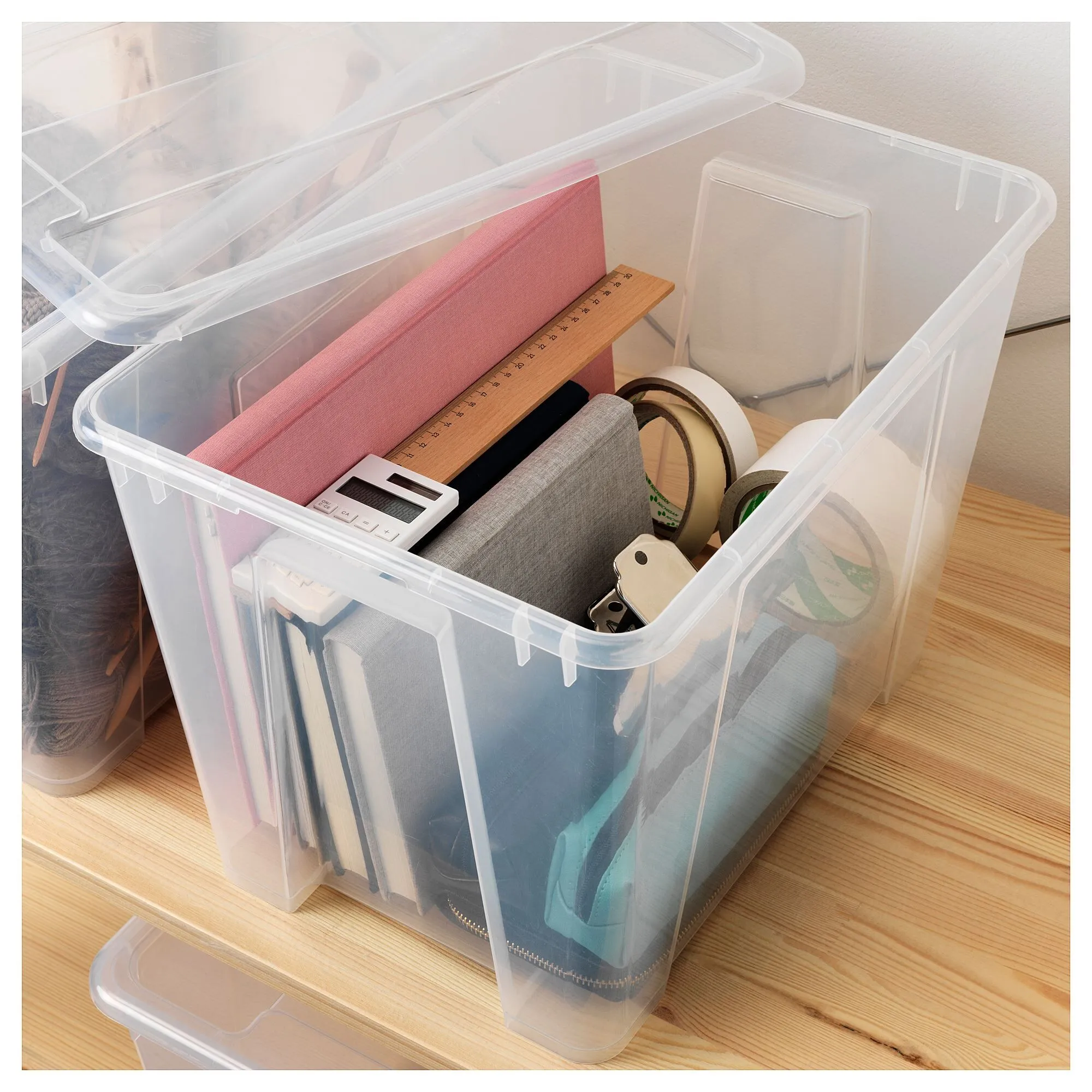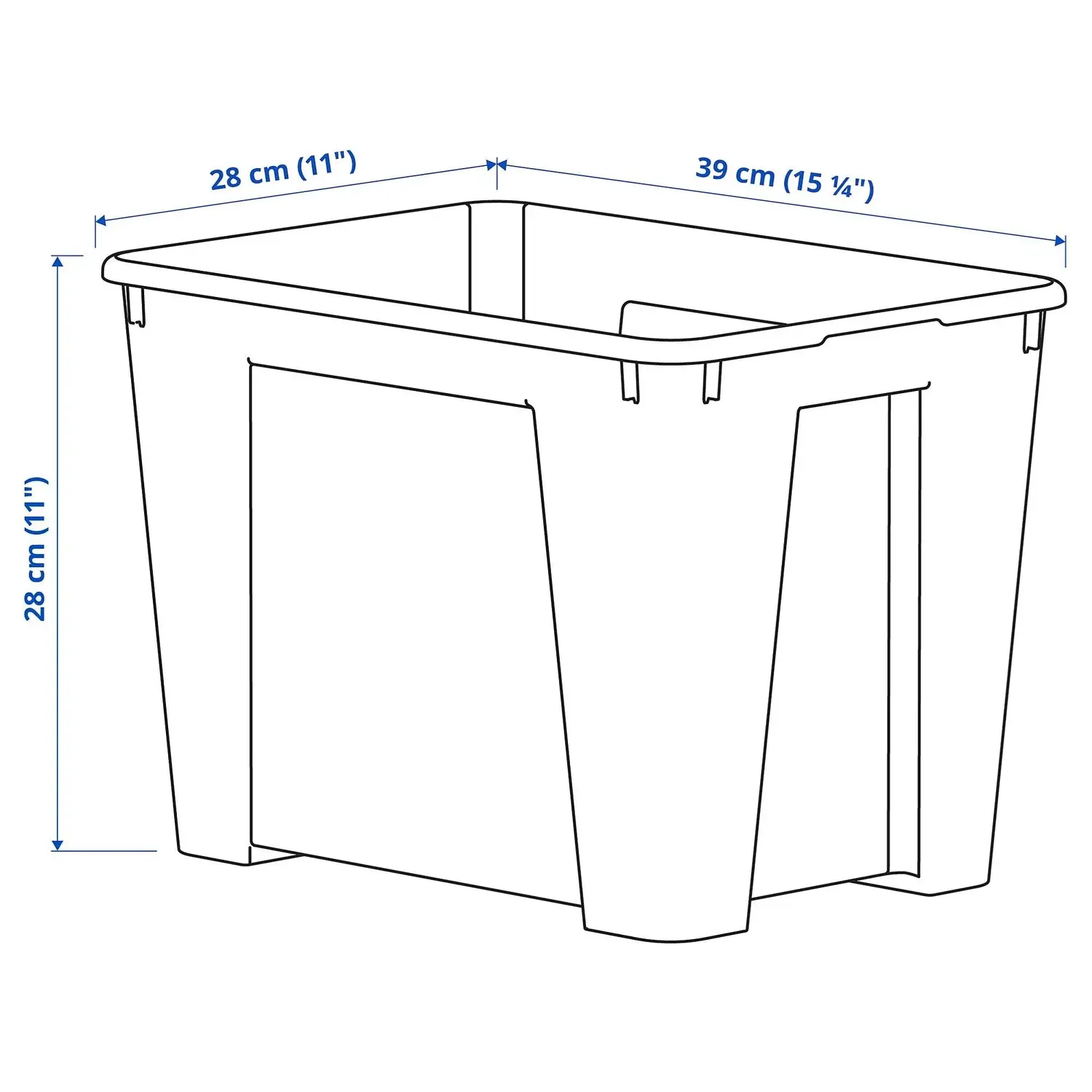 Эта прочная коробка изготовлена из прозрачного пластика и удобна для хранения сезонных вещей и предметов для хобби. В комплекте с крышкой SAMLA, чтобы ящик можно было штабелировать.
