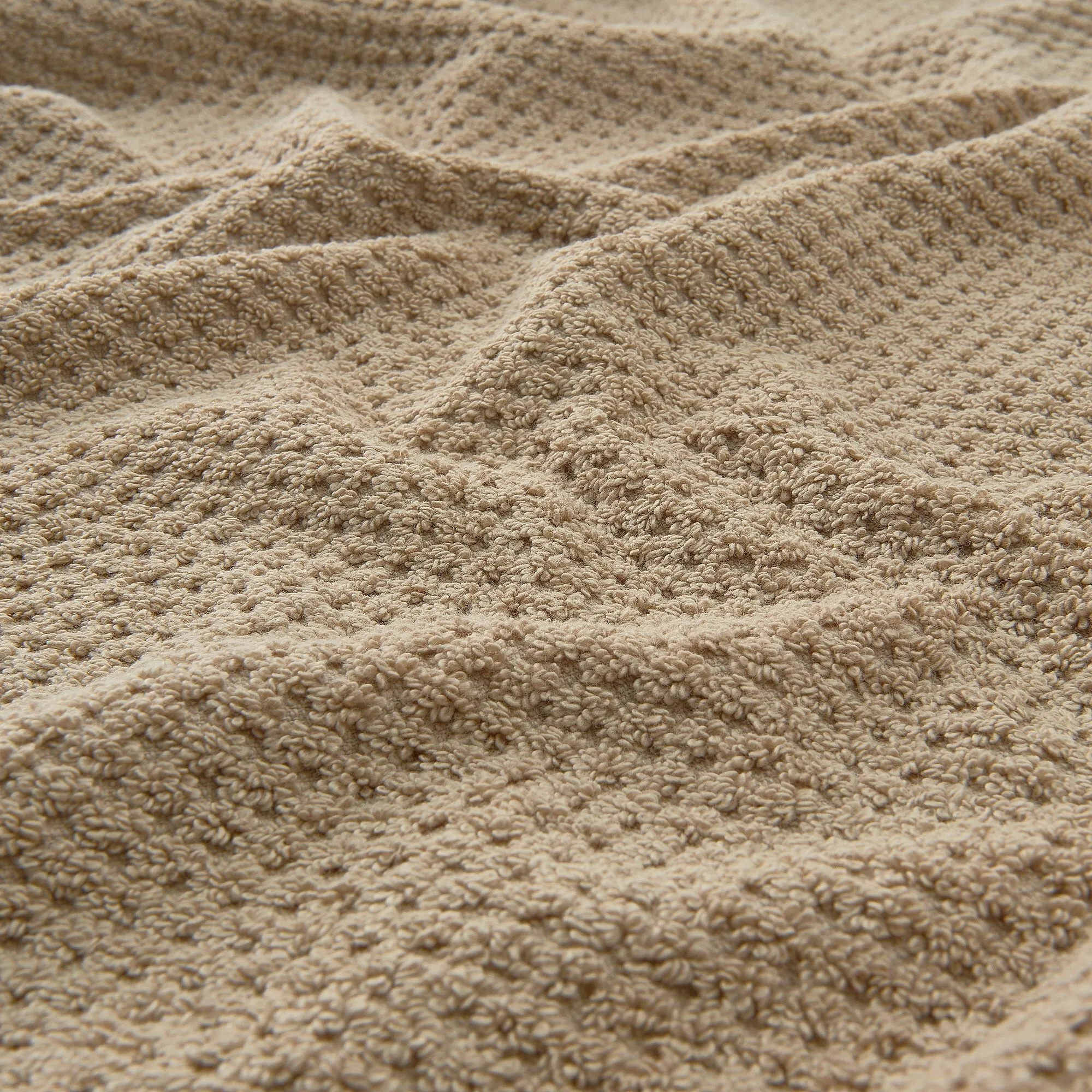 Мягкое и пушистое полотенце GULVIAL бежевого цвета средней толщины (500 г/м²) изготовлено из 100% хлопка, что делает его прочным, впитывающим влагу и идеальным для повседневного использования.