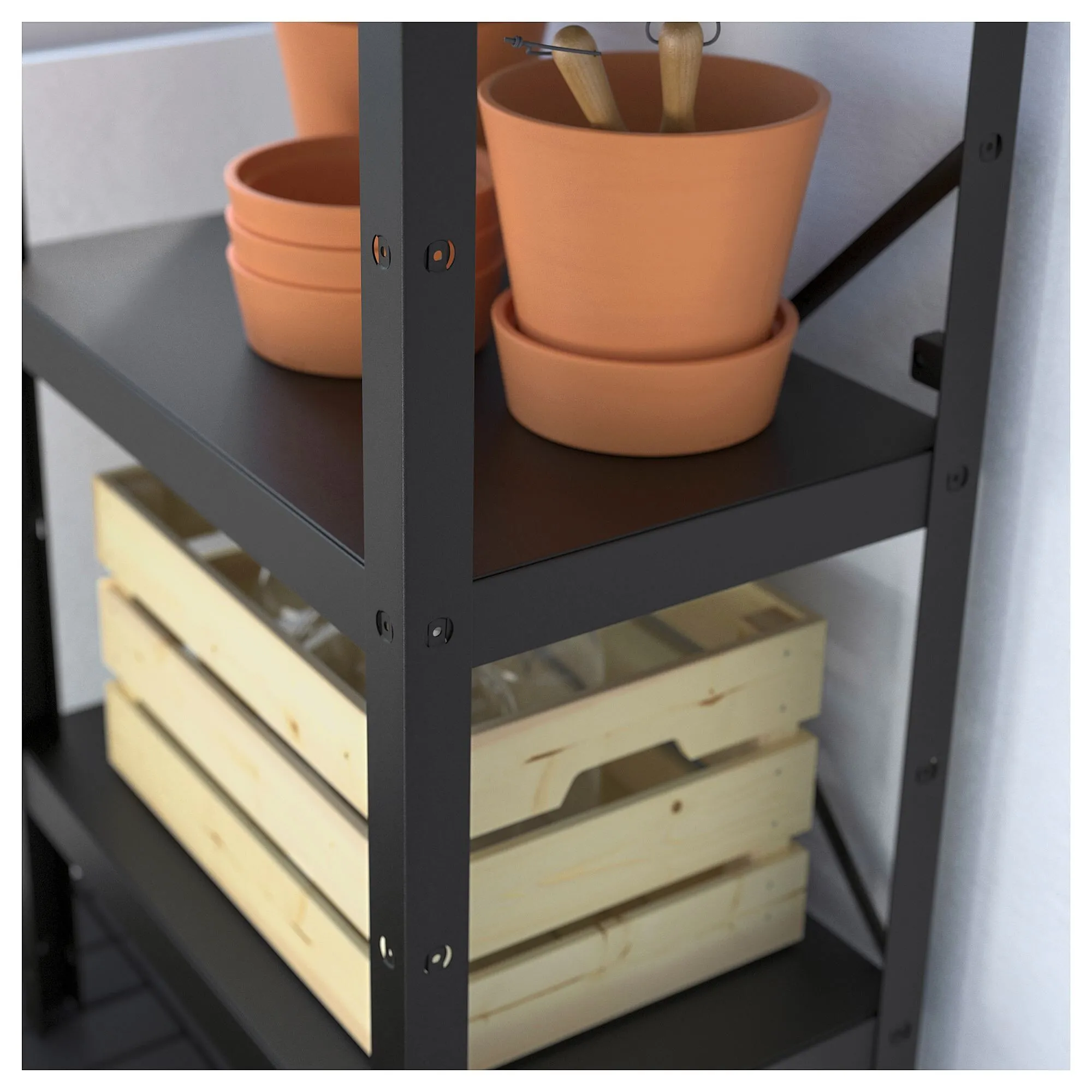 Эта система хранения — наша интерпретация тяжелого металла — прочная, долговечная и гибкая. Также легко собирается, комплектуется по мере необходимости и достаточно прочен, чтобы выдерживать влагу, грязь и тяжелые грузы.