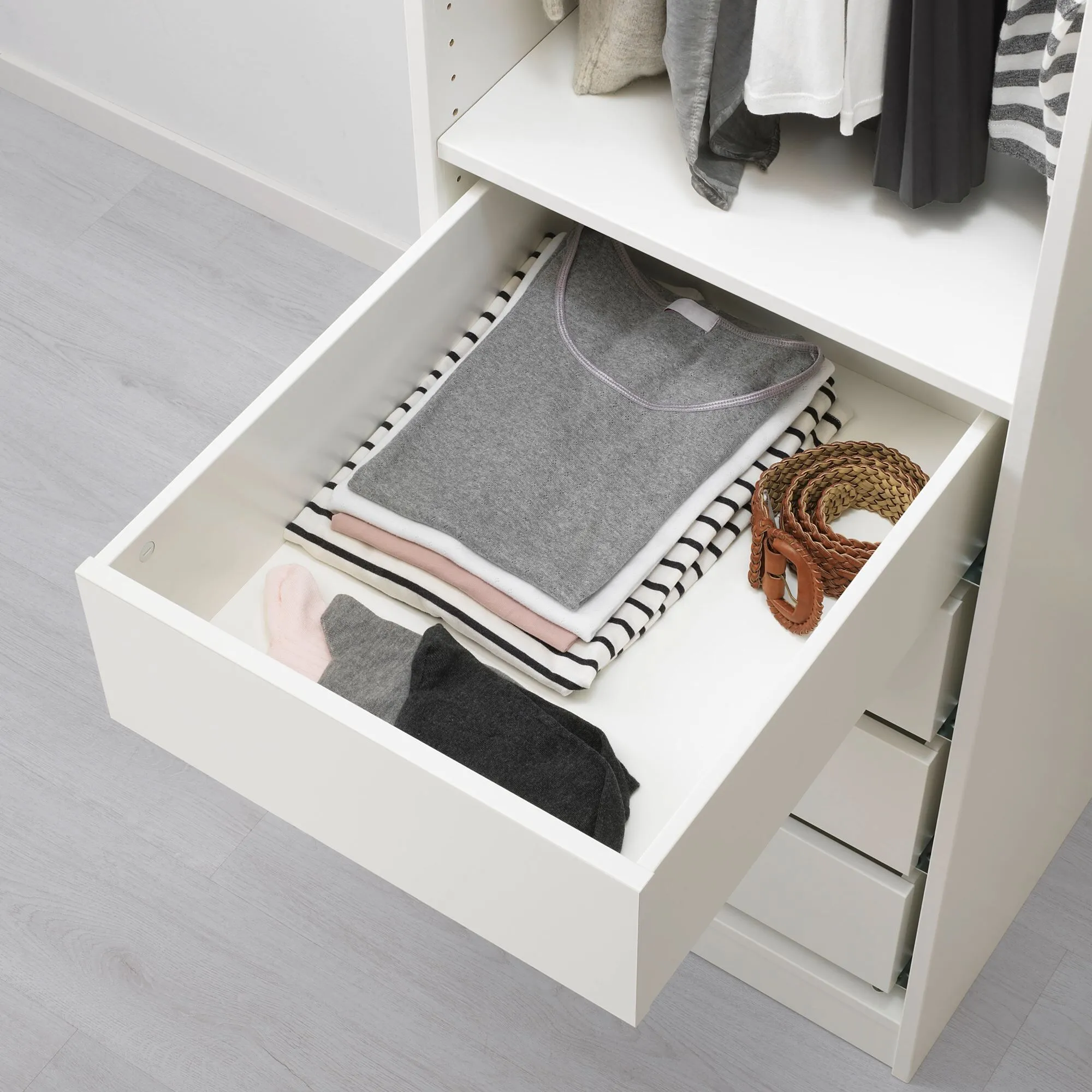 Если у вас есть открытый гардероб ПАКС, вы можете добавить дополнительный индивидуальный подход, объединив этот ящик с любыми ручками или ручками по вашему выбору.