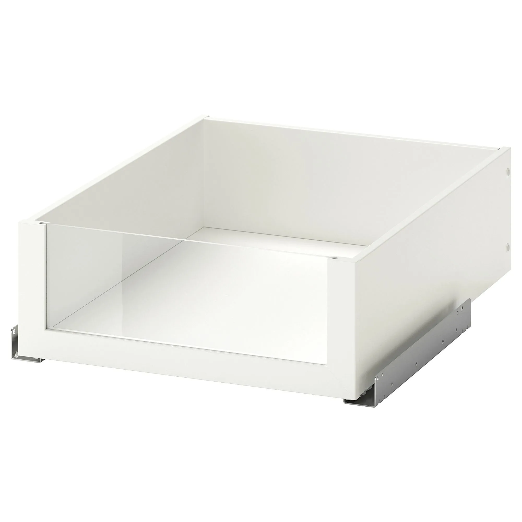 Ящик со стеклянной передней панелью позволяет быстро увидеть содержимое и придает легкость и воздушность вашему гардеробу.