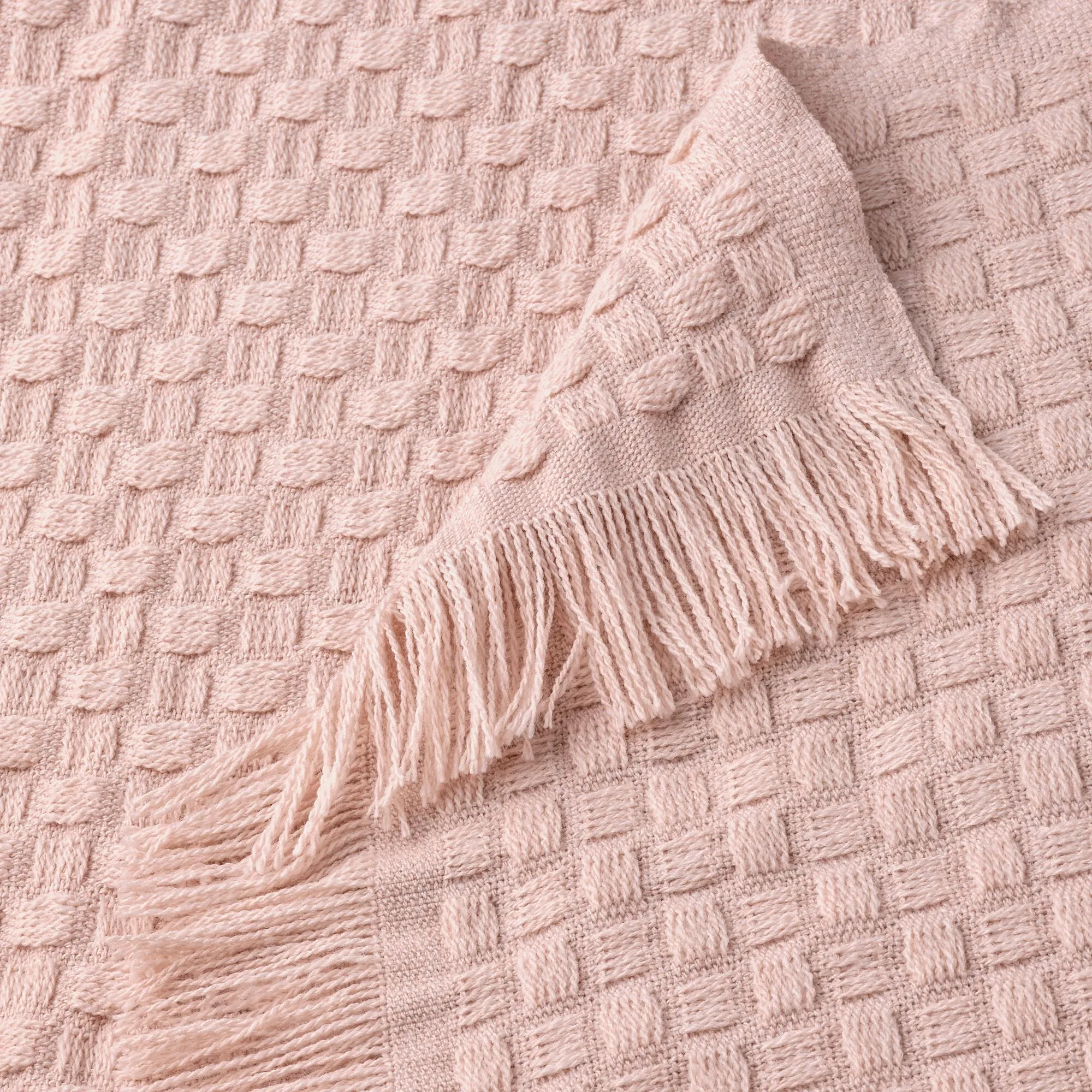 Корзинчатое переплетение придает пледу текстуру и объем.