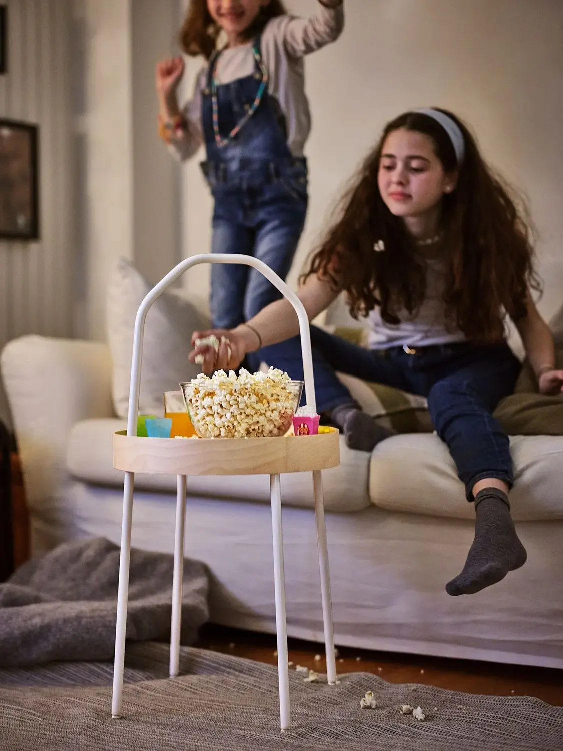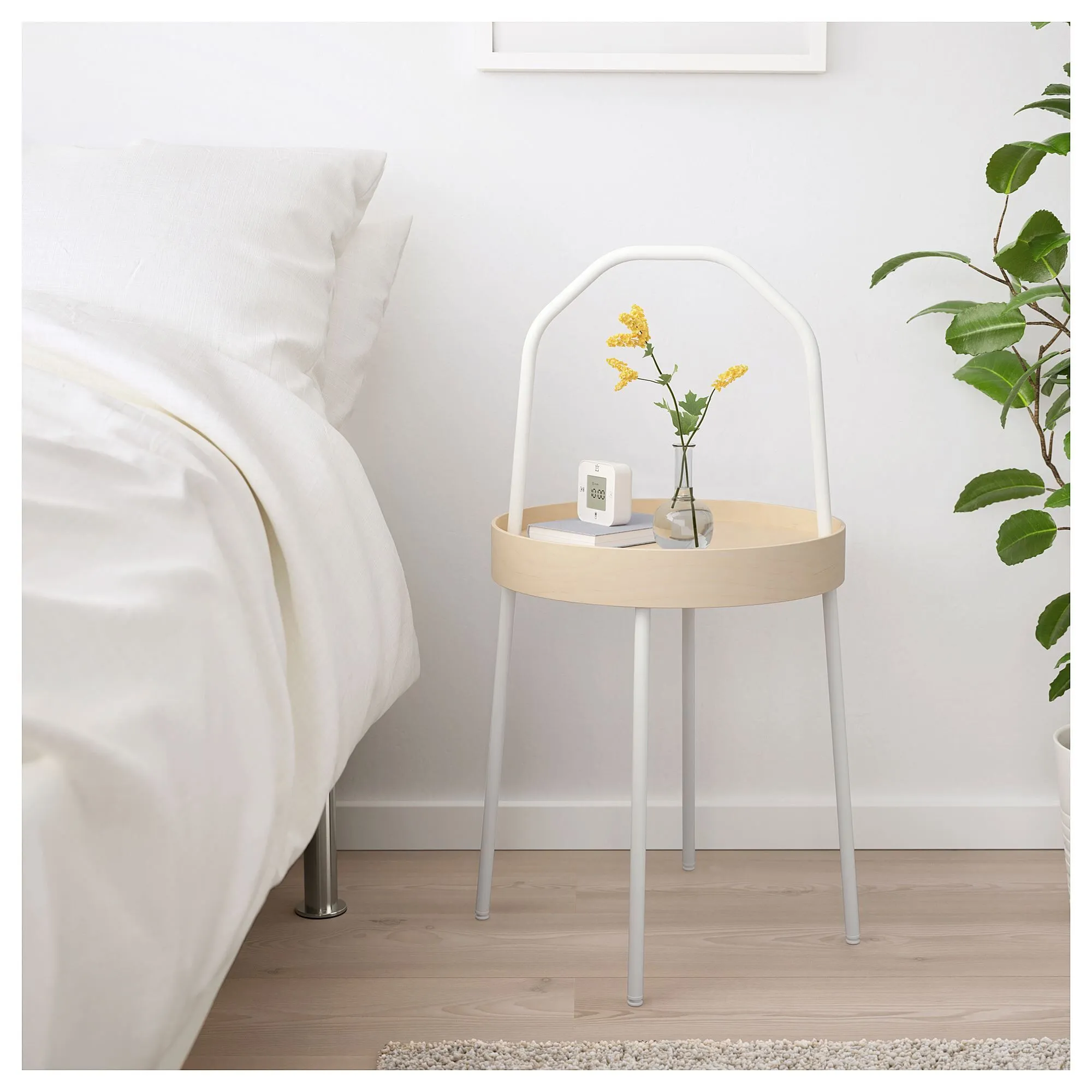 Боковой столик легкий и достаточно маленький, чтобы его можно было поднять одной рукой, а ручка позволяет легко переносить его по дому.
