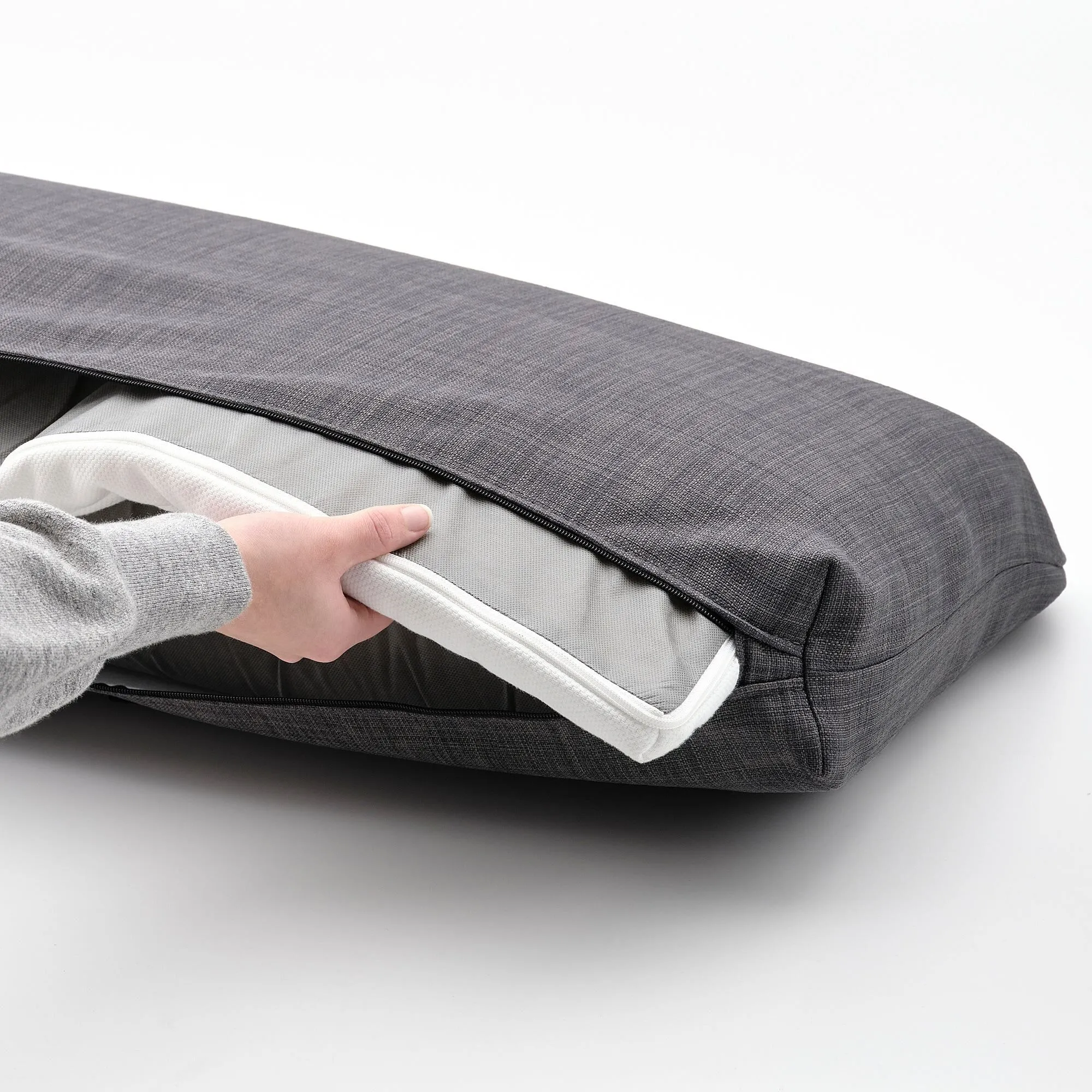 Эта длинная подушка имеет отдельный наматрасник внутри чехла. Его легко свернуть и положить в чехол для хранения, а также он поддерживает спину и позволяет сидеть более расслабленно.