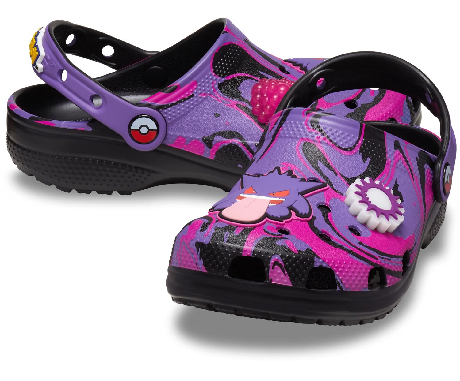 Созданные для поклонников Покемонов, эти трансформируемые классические сабо посвящены скрытному и озорному покемону Генгару. На них изображен фиолетовый вихрь, огромные украшения в стиле Генгара, брелоки Jibbitz в стиле Генгара, логотипы Покемонов и дополнительное место для вашей персонализации. Каждая пара имеет стельку из вспененного материала Croslite для максимального комфорта. Наденьте Pokémon Gengar Classic Clog и покажите свою страсть к этому озорному персонажу теней, куда бы вы ни пошли.
