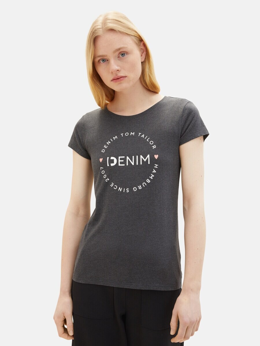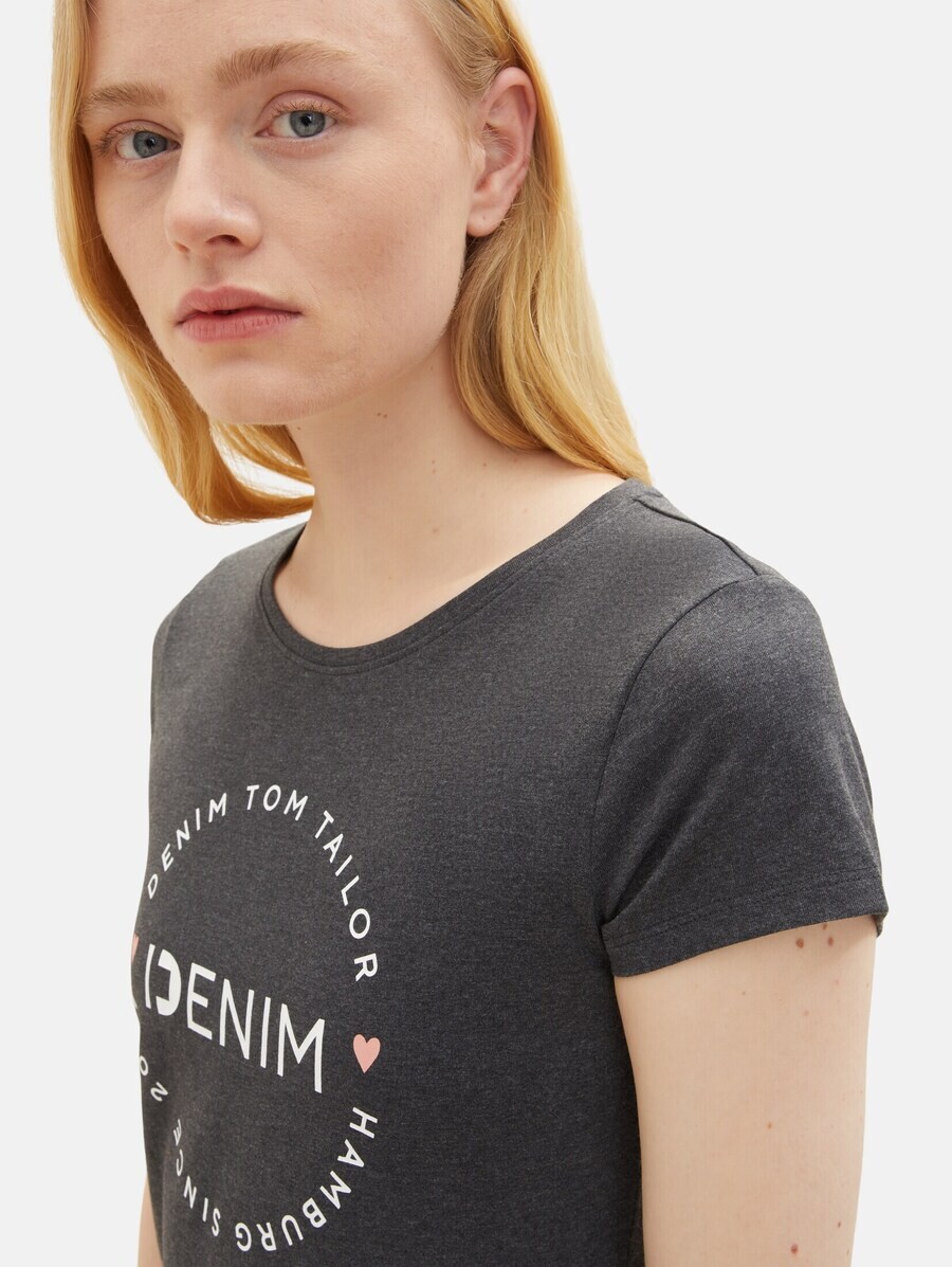 Футболка TOM TAILOR DENIM, антрацит/натуральный белый