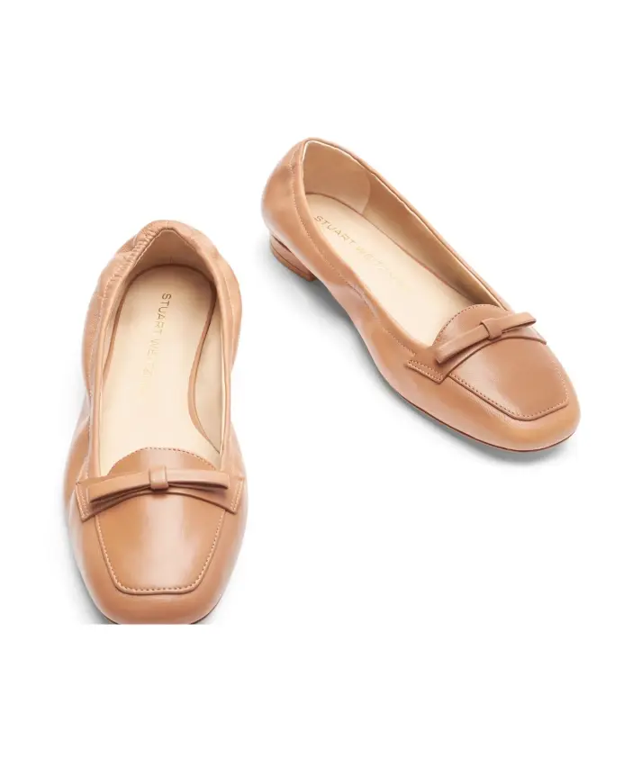 Эластичные лоферы с женственным бантом. Stuart Weitzman, бежевый