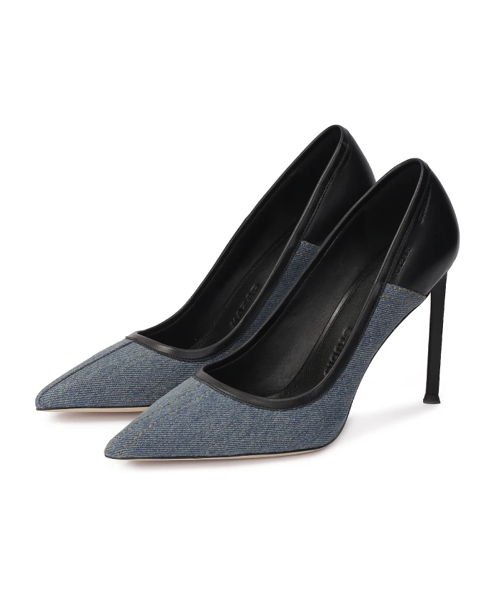 Представляем оригинальные черно-синие туфли-лодочки с острым носком, выполненные из высококачественной лицевой кожи и джинсовой ткани. Они имеют оригинальный дизайн, который наверняка привлечет внимание многих любителей моды. Это идеальный выбор для женщин, которые ценят комфорт и стильный внешний вид. Насосы были изготовлены с вниманием к деталям, что гарантирует их долговечность и надежность. Эффектная обувь станет интересным декоративным акцентом образа. Кожаная подошва с резиновой вставкой сочетает в себе элегантную эстетику и натуральность кожи с исключительным сцеплением и долговечностью резины, обеспечивая идеальное сочетание комфорта, безопасности и стиля. Подкладка из полуанилиновой овчины с отличными влагопоглощающими свойствами обеспечивает исключительный комфорт.