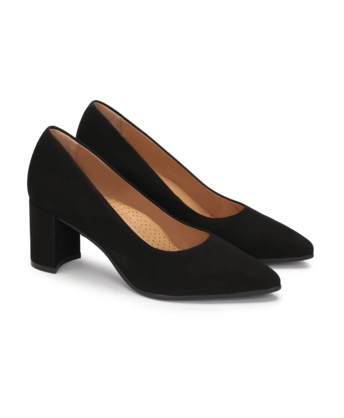 Черные туфли-лодочки – это минималистичная обувь, идеальная для женщин, которые ценят классическую элегантность и удобную посадку. Модель из высококачественного нубука имеет классический крой с простым верхом и широким каблуком, смотрится на ноге очень элегантно. Черные туфли – незаменимая вещь в женском гардеробе. Подкладка из полуанилиновой козьей кожи обеспечивает исключительный комфорт благодаря отличным свойствам поглощения влаги.