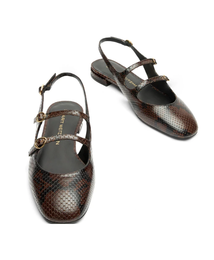 Поднимите свой стиль с туфлями Stuart Weitzman BENNI MARY JANE с босоножками. Эта модная модель, сочетающая в себе стиль Мэри Джейн и стиль с открытой пяткой, имеет двойной ремешок с полированными закругленными пряжками. Элегантный ремешок с открытой пяткой позволяет подобрать индивидуальную посадку. Эти балетки, изготовленные из ткани MINI PRINTED PYTHON, просто необходимы модной женщине.
