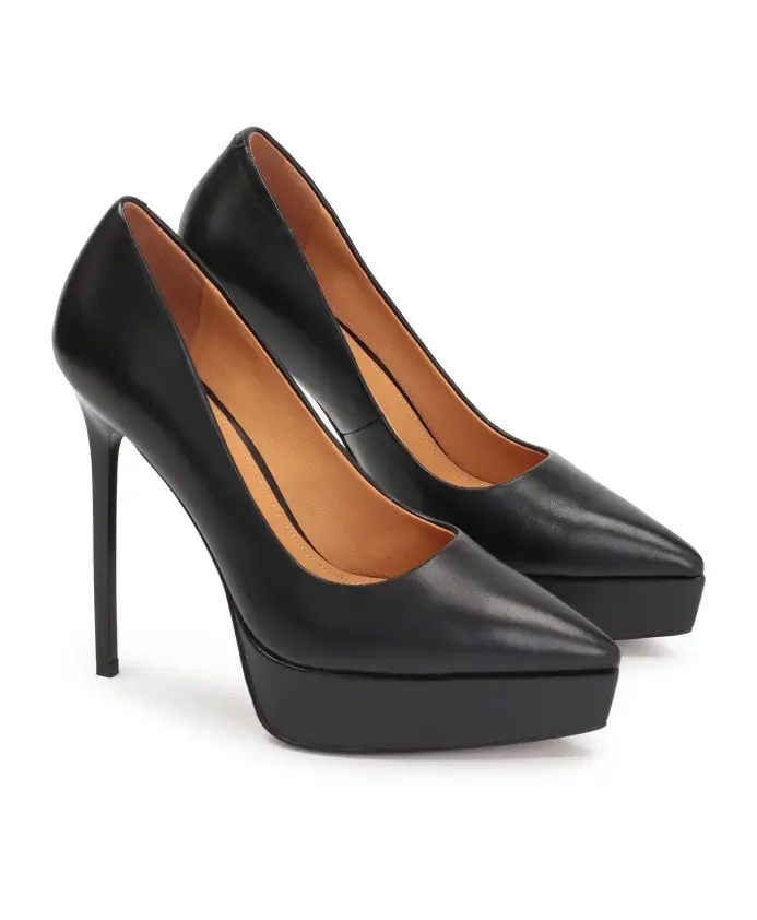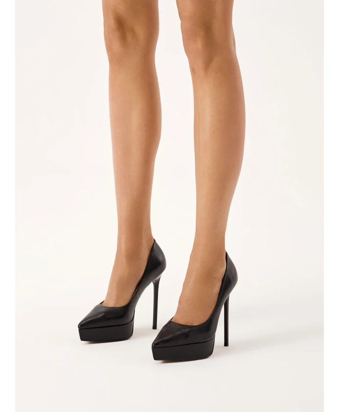 Туфли с острым носком и высокой элегантной шпилькой изготовлены из высококачественной гладкой кожи. Минималистичный крой включает подошву на платформе спереди, которая подчеркивает силуэт и уравновешивает воспринимаемую высоту каблука. Черные туфли на шпильке – базовый элемент многих нарядов. Они хорошо сочетаются с джинсами, повседневными и вечерними платьями. Подошва Microlite отличается долговечностью и эстетичным внешним видом. Нежная полуанилиновая подкладка обеспечивает исключительный комфорт.