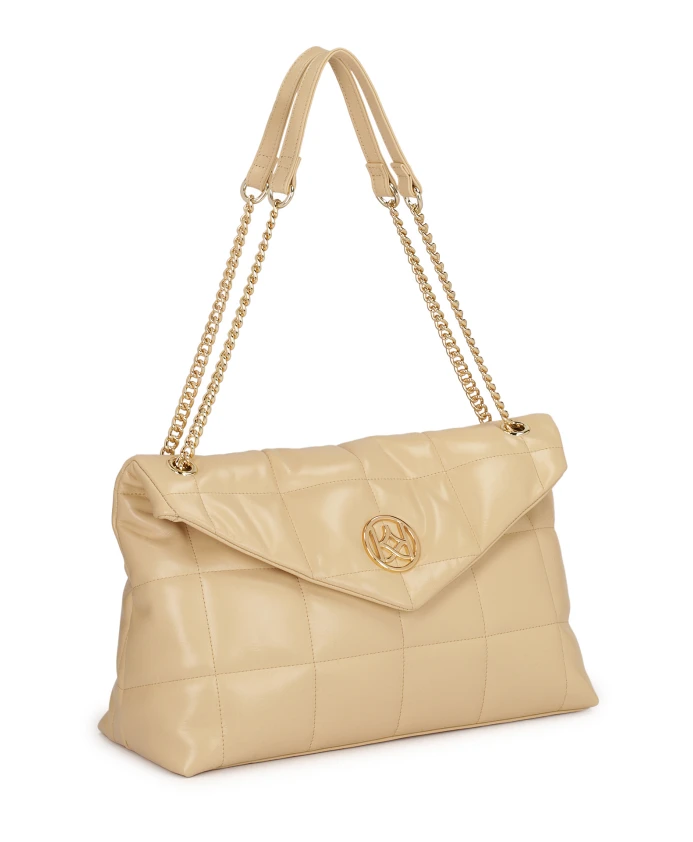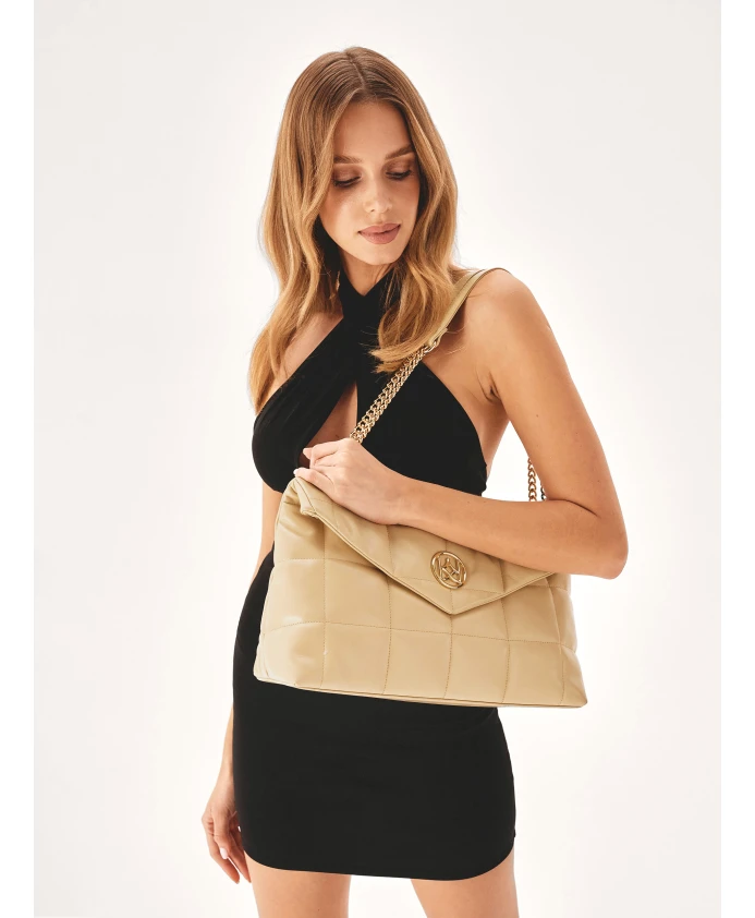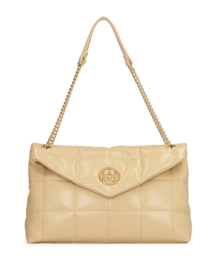 Сумка через плечо с просторным внутренним пространством изготовлена из высококачественной лицевой кожи, которой благодаря регулярной строчке придается объем и пышность. Визуальная легкость, подходящий кремовый цвет и замечательный трехмерный эффект понравятся женщинам, которые ищут сумку, которая будет одновременно удобной в использовании и модной. Металлические плечевые цепочки и крупный вензель KAZAR интересно завершают всю композицию. Подробности о товаре: Сумочка имеет 1 основное отделение, которое закрывается клапаном на кнопке. Внутри 2 открытых кармана и 1 карман на молнии. Плечевые цепи имеют кожаную вставку для удобства при ношении.