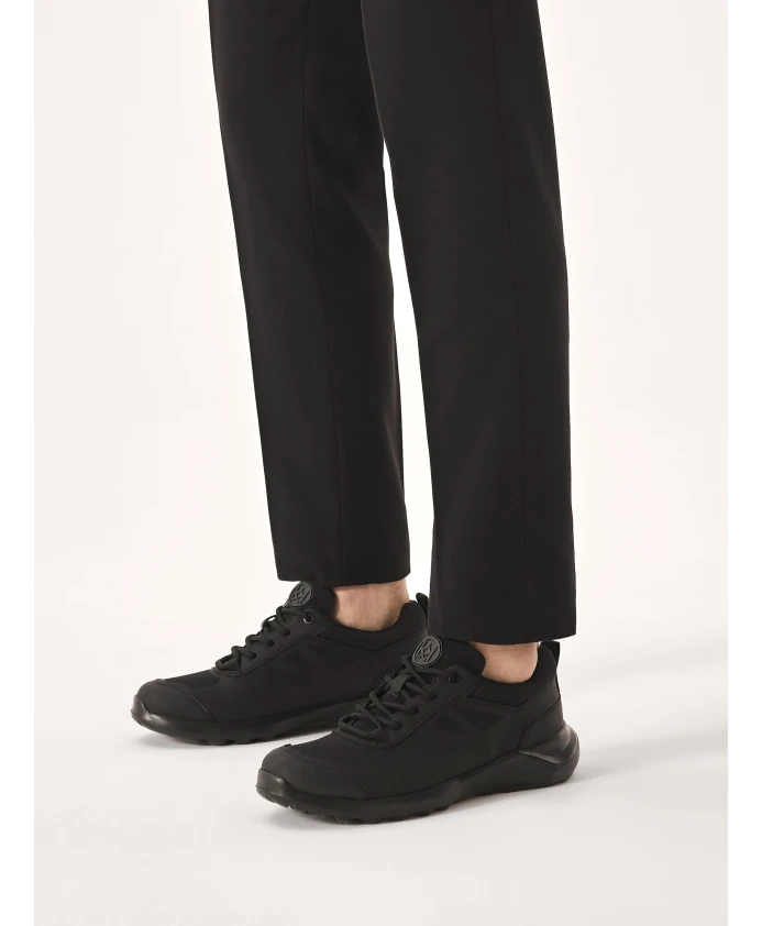 Мужские кроссовки классического черного цвета, изготовленные из ткани и синтетического материала высочайшего качества, выделяются из толпы своим нестандартным дизайном. Простой верх выглядит современно и модно благодаря комбинированным материалам. Удобная обувь в стиле смарт-кэжуал, подходящая для повседневных образов, является обязательным атрибутом мужского гардероба. Подкладка из овчины обеспечивает исключительный комфорт благодаря отличным свойствам поглощения влаги.