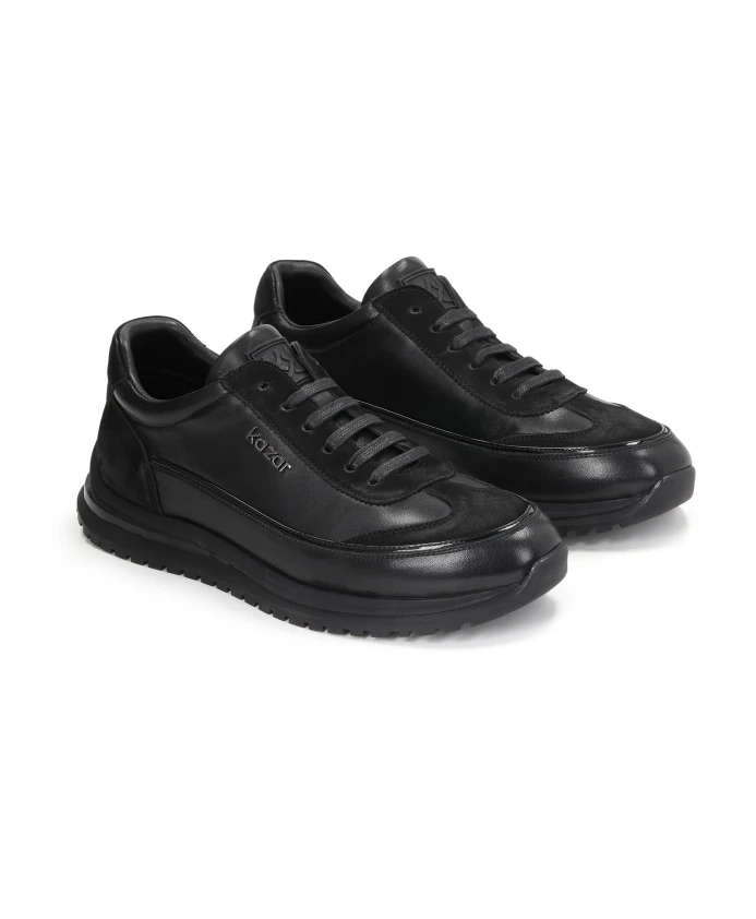 Удобные кроссовки в стиле кэжуал – идеальный вид обуви для повседневного использования. Неподвластный времени стиль, универсальный цвет и модный внешний вид понравятся даже самым требовательным мужчинам. Верх из гладкой кожи украшен вставками из матового нубука, создающими интересный контраст. Внутренняя подкладка обуви из натуральной кожи гарантирует гигиенические условия и высокий уровень комфорта.
