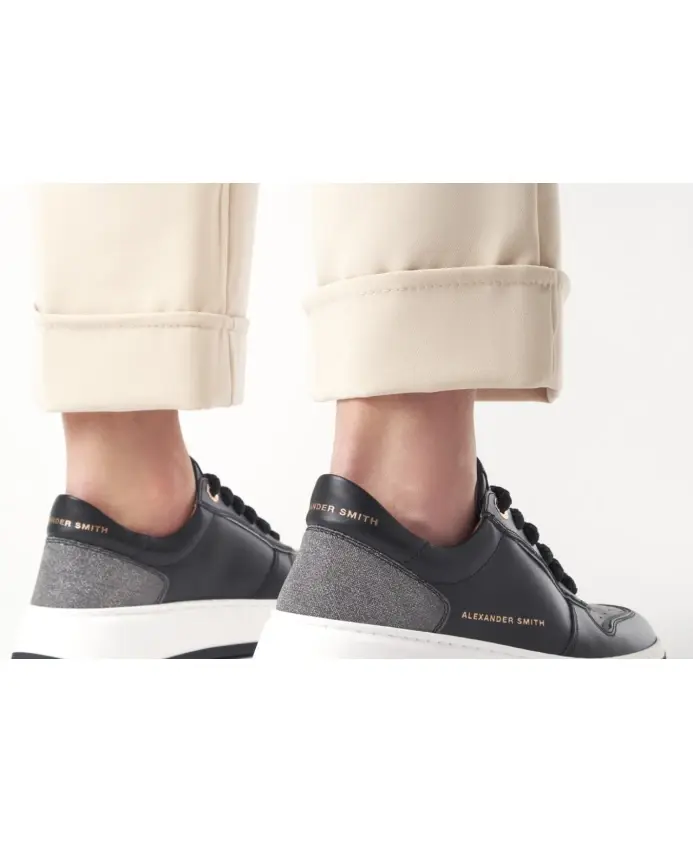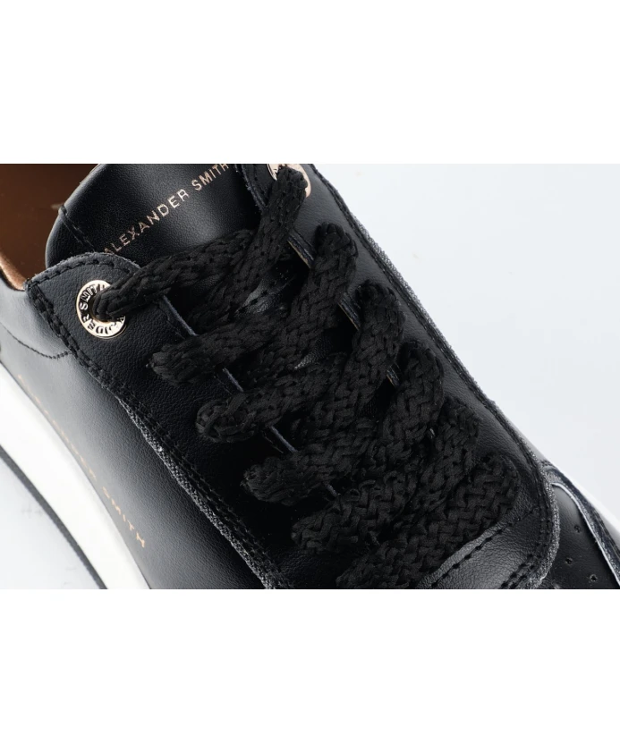 Представляем новую версию культовой модели от Alexander Smith – кроссовок HARROW WOMAN BLACK. Эти туфли идеально сочетают в себе спортивные и элегантные элементы, а двухцветная подошва дополняет цвет верха. Черная версия имеет боковой ромбовидный узор, придающий изделию изысканный вид. Эти кроссовки с кожаным верхом, золотисто-розовыми люверсами и логотипами сзади и сбоку — настоящий модный тренд. Съемная стелька обеспечивает дополнительный комфорт, а подошва толщиной 40 мм обеспечивает стильную высоту. Сделано в Италии с тщательным вниманием к деталям.