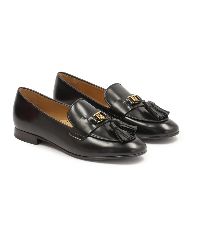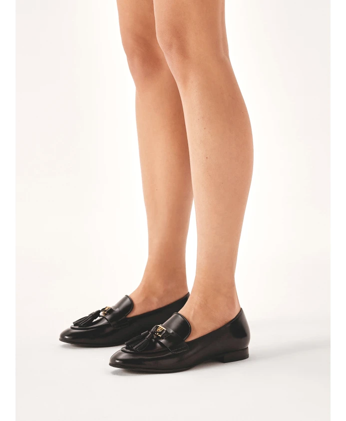 Лоферы из натуральной кожи созданы для обеспечения комфорта и стильного образа в повседневной жизни. Слипоны классического кроя лоферы – идеальное сочетание элегантности и городского стиля. Они прекрасно сочетаются с деловой и праздничной одеждой, а также с повседневной одеждой из денима. Привлекают внимание металлические украшения с монограммой «Казар» и свободно свисающие крючки. Комфортная стелька с перфорацией изготовлена из мягкого полуанилина из козьей кожи, что гарантирует гигиенические условия и исключительный комфорт.