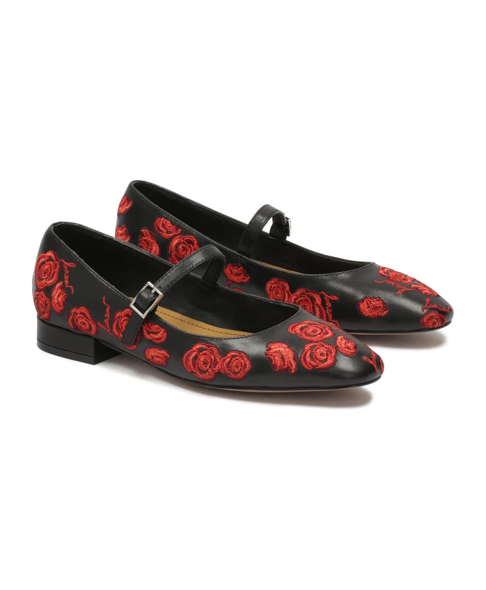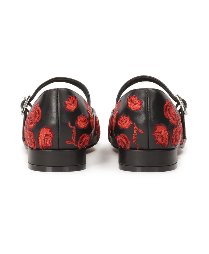 Необычные туфли-лодочки на плоской подошве на каблуке отличаются необыкновенной красотой и необыкновенной утонченностью. Высококачественная натуральная кожа черного цвета украшена вышитыми красными цветами, которые придают исключительный шарм и неповторимый характер. Каждый цветок словно нежная нотка романтики, оживляющая всю обувь. Плоский каблук не только гарантирует комфорт, но и придает обуви утонченность, что делает ее идеальным выбором для любого случая. Ремешок в средней части стопы — практичный элемент, обеспечивающий дополнительную поддержку и устойчивость, позволяющий наслаждаться свободой движений и уверенной ходьбой. Подошва из тунисской кожи отличается долговечностью и эстетичным внешним видом. Подкладка из полуанилиновой овчины обеспечивает исключительный комфорт благодаря отличным свойствам поглощения влаги.