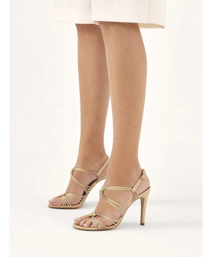 Уникальные сандалии из высококачественной лицевой кожи нежного бежевого тона – символ элегантности и классической красоты. Их оригинальный дизайн сочетает в себе традиции и современность. Многочисленные изящные ремешки, опоясывающие среднюю часть стопы, являются не только украшением, но и функциональным элементом, позволяющим идеально адаптироваться к форме стопы. Художественная металлическая застежка с монограммой KAZAR добавляет дополнительный шарм и подчеркивает эксклюзивный характер. Эти босоножки – квинтэссенция женственного стиля. Благодаря универсальному цвету и дизайну они прекрасно дополнят вечерние наряды и придадут им достойный вид на красной ковровой дорожке. Подошва из тунисской кожи отличается долговечностью и эстетичным внешним видом. Подкладка из полуанилиновой овчины обеспечивает исключительный комфорт благодаря отличным свойствам поглощения влаги.