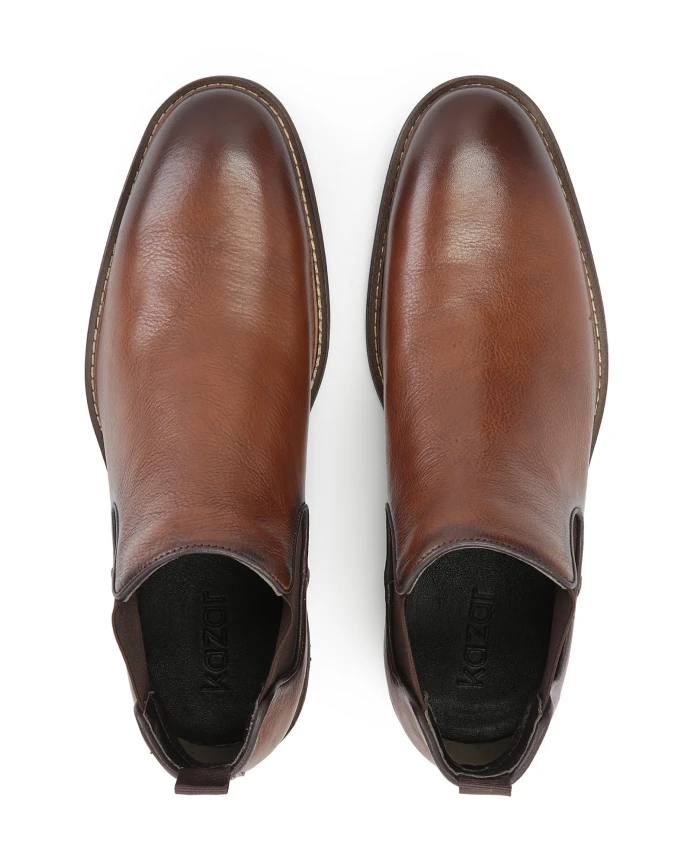 Обновите свой стиль с помощью этих мужских ботинок челси Kazar из высококачественной лицевой кожи. Конструкция без шнуровки с эластичными вставками обеспечивает удобную посадку и легкость надевания и снятия. Светло-коричневый цвет придаст элегантность любому наряду. Мягкая подкладка из овчины и тканевая подкладка обеспечивают тепло и комфорт для повседневного использования.