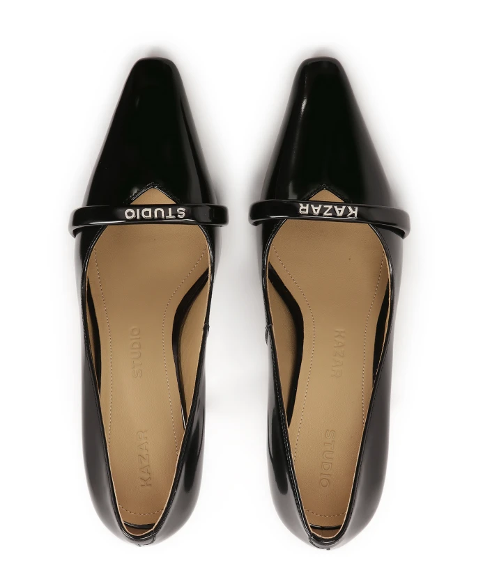 Неповторимые черные туфли на элегантной шпильке – это квинтэссенция классики в сочетании с современным дизайном. Для них характерен заостренный носок, придающий обуви характер и визуально удлиняющий силуэт, а также эффектная полоса, украшенная логотипом KAZAR STUDIO, подчеркивающая их эксклюзивный характер. Туфли изготовлены из высококачественной натуральной кожи с анилиновой отделкой, известной своей мягкостью, гибкостью и способностью прекрасно стареть. Кожа гладкая и мягкая на ощупь, но при этом очень прочная, поэтому эта обувь станет выгодной инвестицией на долгие годы. Идеально подходит для ношения как в офисе, так и для вечерних выходов в свет. Они прекрасно сочетаются с элегантным костюмом, классическим маленьким черным платьем или более смелыми нарядами, такими как брюки-палаццо или модные комбинезоны этого сезона. Кожаная подошва с резиновой вставкой сочетает в себе элегантную эстетику и натуральность кожи с исключительным сцеплением и долговечностью резины, предлагая идеальное сочетание комфорта, безопасности и стиля. Подкладка из полуанилиновой овчины с отличными влагопоглощающими свойствами обеспечивает исключительный комфорт.