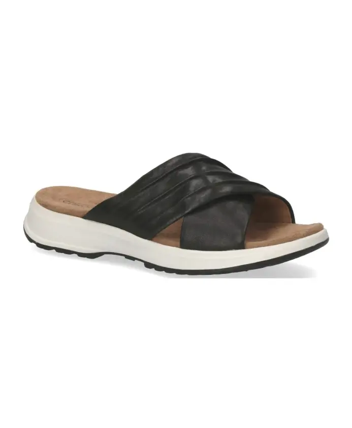 Почувствуйте комфорт и стиль в этих черных повседневных лоферах с открытым носком от Caprice. Эти ползунки, созданные для женщин, идеально подходят для взрослых, которые хотят стильно отдохнуть. Эти тапочки с кожаным верхом и текстильной подкладкой создают ощущение роскоши. Синтетическая подошва обеспечивает долговечность и длительный комфорт. Поднимите свою домашнюю одежду на новый уровень с помощью этих шикарных черных шлепанцев от Caprice. Код товара: 9-27206-28-040.