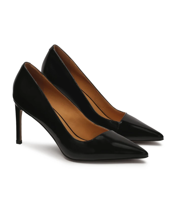Классические черные кожаные туфли-лодочки с острым носком – это выражение элегантности и вневременного стиля. Заостренные носы придают им тонкий, но сильный характер, который идеально сочетается с различными стилями, от формального до повседневного. Дополнительной прелестью этой обуви является красиво вырезанная верхняя часть на носке, которая добавляет нежности и изящества. Этот тонкий декор делает туфли необыкновенно чувственными и подчеркивает женственную нежность. Черные туфли – это классика, которая неизбежно восхищает и является неотъемлемой частью женского гардероба. Подкладка из полуанилиновой овчины гарантирует исключительный комфорт, преимуществом которого является повышенное впитывание влаги. Подошва из тунисской кожи гарантирует долговечность, прочность и эстетичный внешний вид обуви.