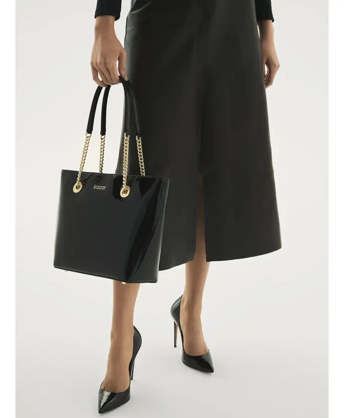 Подчеркните свой стиль с помощью этих черных женских туфель Kazar. Эти классические туфли на шпильке, изготовленные из лакированной кожи премиум-класса, имеют изящный дизайн, излучающий элегантность. Глянцевая отделка добавляет нотку изысканности и делает ее незаменимой универсальной вещью в гардеробе. Тонкий каблук подчеркивает силуэт, а подкладка из высококачественной овчины обеспечивает исключительный комфорт. Дополните свой образ этими вневременными туфлями.
