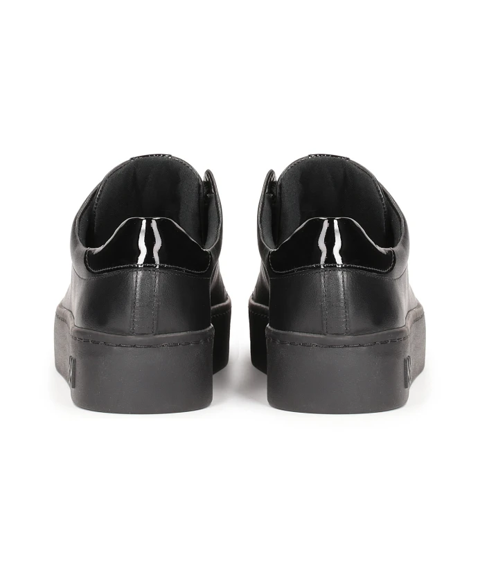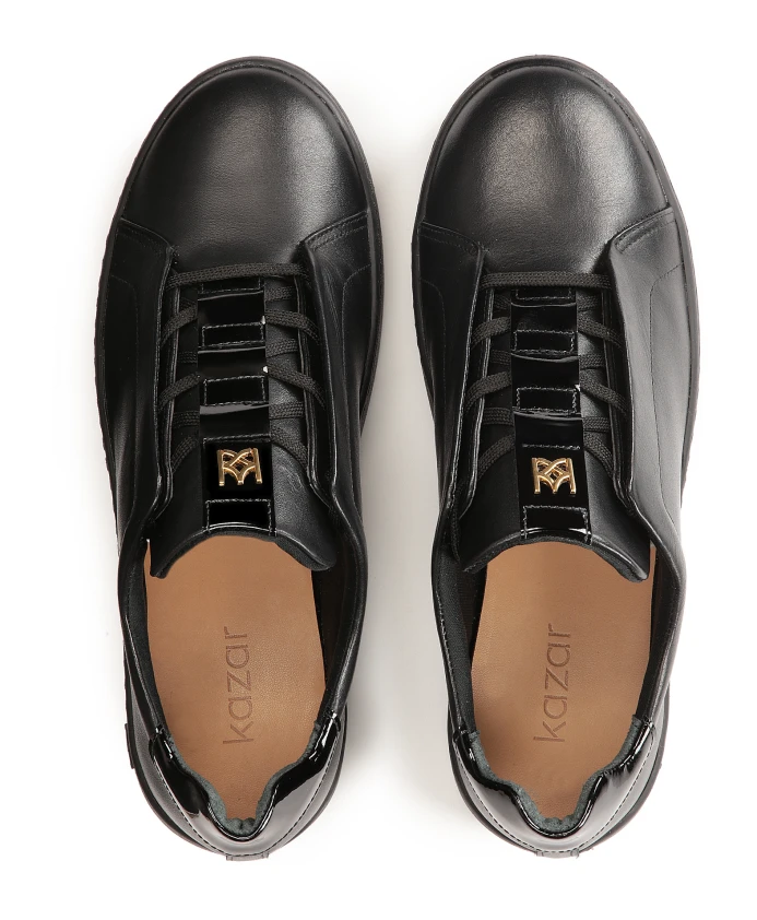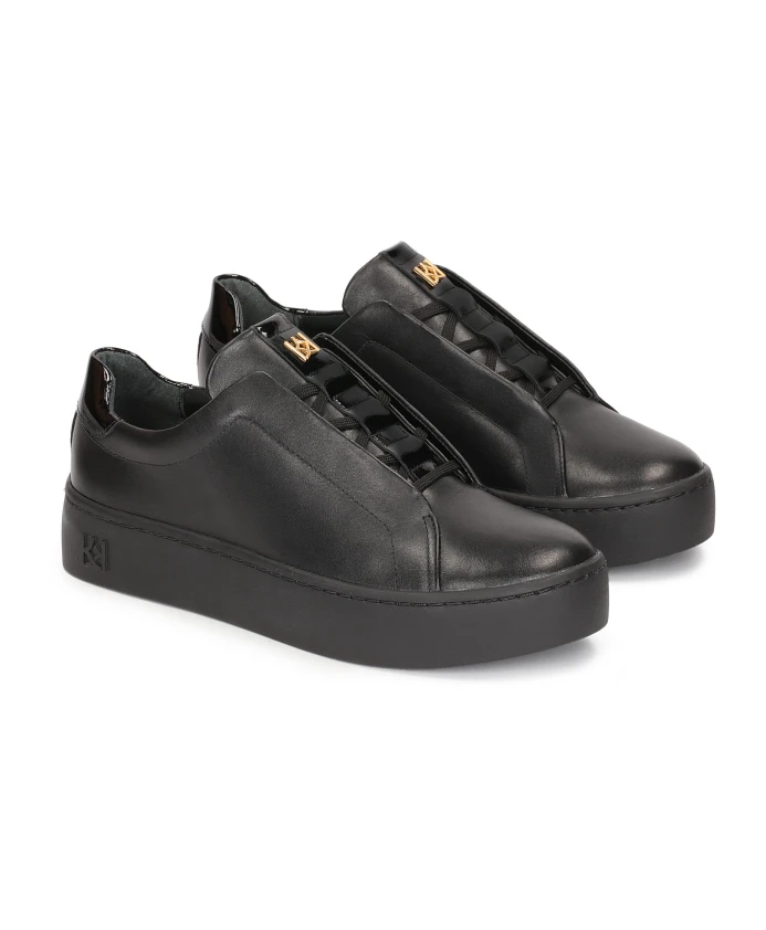 Черные женские кроссовки из высококачественной лицевой кожи простого минималистичного кроя идеально подходят для городского повседневного стиля. Спортивный крой подчеркнут толстой подошвой. Верх выполнен из тканого материала, что придает этой модели исключительно оригинальный вид. Подкладка из мягкой овчины гарантирует высокий комфорт при ношении, а тканевая подкладка согревает в холодные дни.