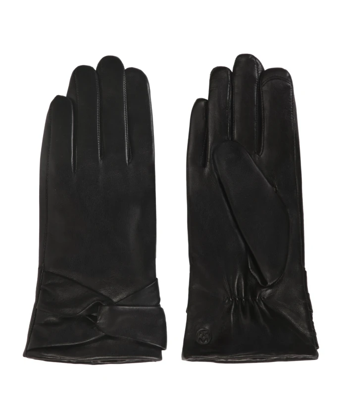 Элегантные черные женские перчатки из натуральной кожи – это квинтэссенция классического стиля в сочетании с современными технологиями. На передней части каждой перчатки имеется тонкий декоративный узел, придающий им характер, а на задней стороне - изящная тисненая монограмма KAZAR, подчеркивающая их эксклюзивный характер. Перчатки совместимы с сенсорными экранами, что позволяет удобно пользоваться мобильными устройствами, не снимая их в холодную погоду. Внутренняя подкладка отделана мягким текстильным материалом, обеспечивающим дополнительное тепло и комфорт. Идеально подходит для тех, кто ценит функциональность и элегантность зимнего аксессуара.