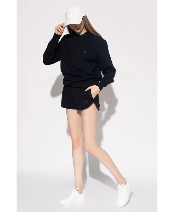 Обновите свой летний гардероб этими стильными черными шортами от Golden Goose. Эти шорты изготовлены из 100% хлопка и имеют эластичный пояс со шнурком для удобной посадки. Два кармана для рук обеспечивают удобное место для хранения, а графический принт с логотипом добавляет узнаваемости бренда. Эти шорты идеально подходят для любого повседневного случая и являются незаменимыми для женщин, следящих за модой.