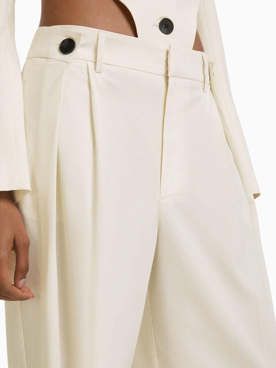 Брюки Bershka Wide leg Pleat-Front Pants, экрю 6 003₽