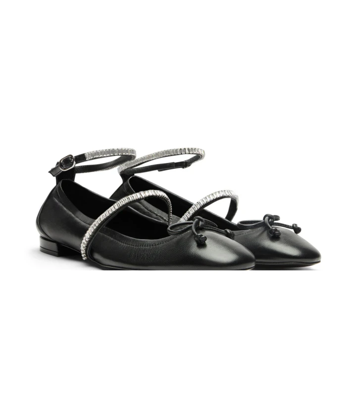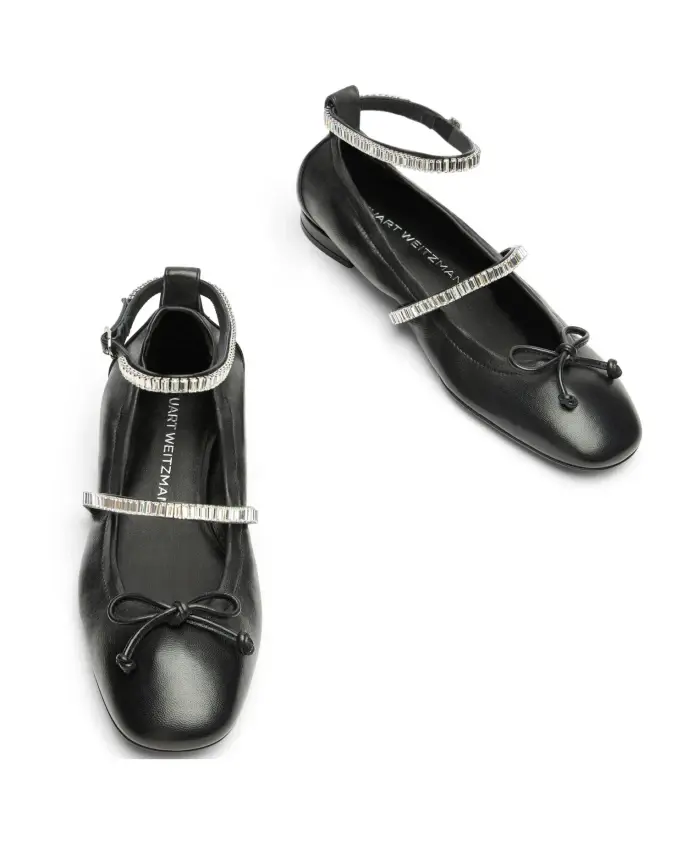 Поднимите свой стиль с БАЛЕТКАМИ STEFANIE от Стюарта Вайцмана. Эти женственные балетки оснащены элегантным ремешком на союзке и регулируемым ремешком на щиколотке, украшенными кристаллами багетной огранки, придающими нотку гламура. Этот стиль, созданный вручную мастерами SW в Испании, обеспечивает легкий блеск и дополнен бантиком. Изготовлен из лакированной кожи наппа и украшен хрустальными деталями.