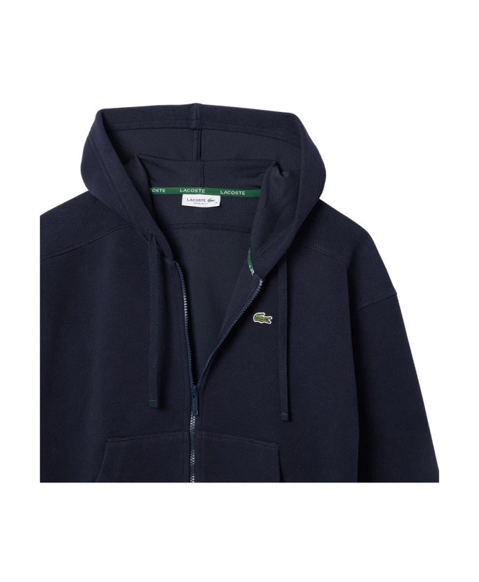 Обновите свой гардероб этой шикарной синей толстовкой с капюшоном от Lacoste. Изготовленная из высококачественной двусторонней ткани пике, она сочетает в себе комфорт и стиль. Изящный дизайн, капюшон на шнурке и легендарная эмблема в виде крокодила идеально подходят для любого случая.