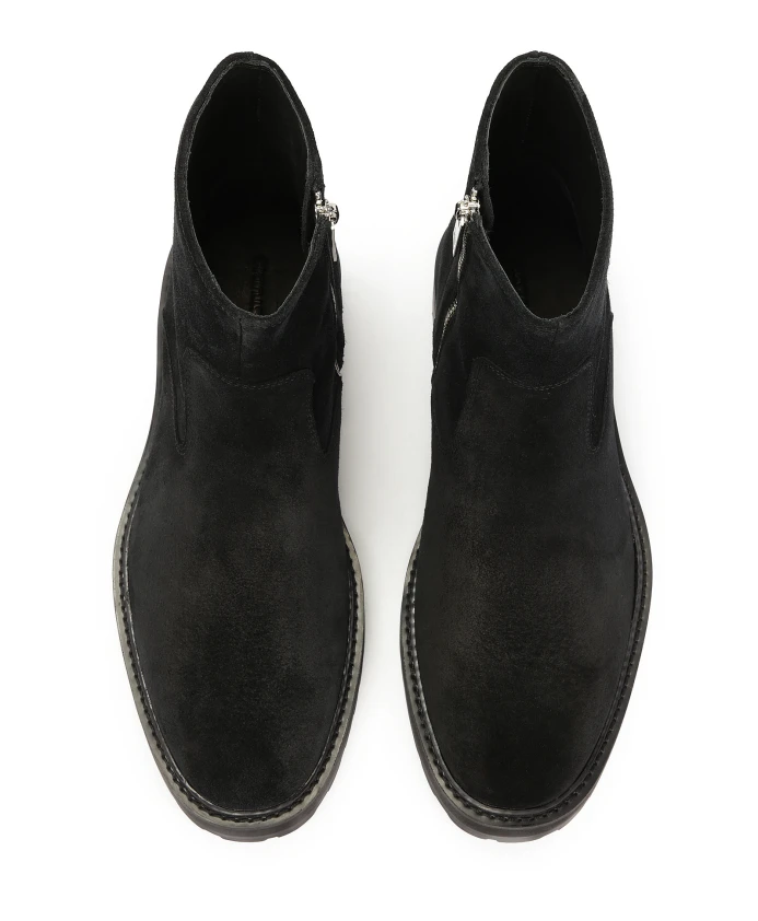 Черные мужские ботинки – это сочетание стиля и комфорта. Изготовленные из высококачественной замши, они имеют элегантный внешний вид и приятную текстуру. Голенище оснащено практичной застежкой-молнией, которая позволяет легко надевать и снимать, обеспечивая при этом идеальную посадку на ноге. Верх украшен рельефной монограммой KAZAR STUDIO, что придает обуви престиж и неповторимый характер. Подошва с легким протектором идеальна для любых городских приключений, будь то прогулка в парке или поездка в город. Эти стильные кроссовки – идеальный выбор для мужчин, которые ценят стиль и комфорт. Подкладка из натуральной кожи обеспечивает исключительный комфорт благодаря отличным свойствам поглощения влаги.