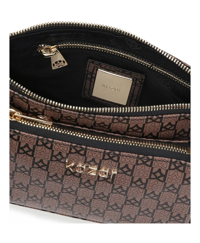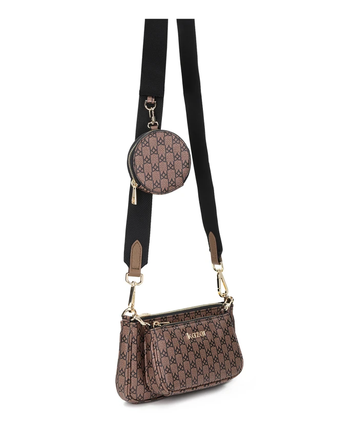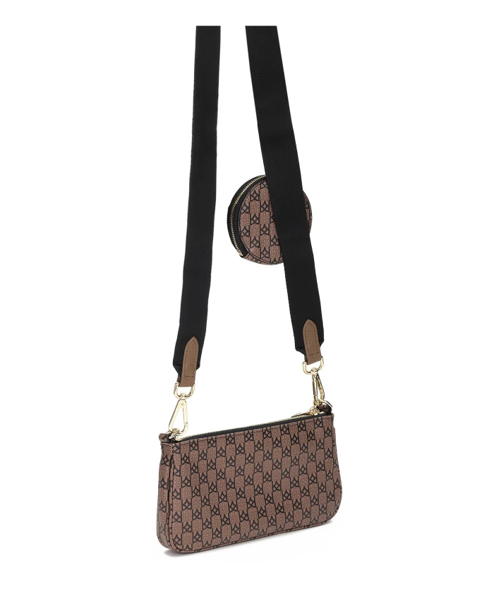 Феноменальная сумка из высококачественной лицевой кожи впечатляет своим замечательным дизайном. Внимание привлекает не только интересный узор, украшающий кожу, но и съемная сумка и кошелек. Все это завершает текстильный ремешок, который создает интересный контраст с гладкой кожей. Эта уникальная модель, состоящая из трех частей, чрезвычайно практична и функциональна. Ее можно с успехом использовать в повседневных стилизациях, придавая современный и модный вид. Подробности о товаре: Основное отделение сумки закрывается на молнию. Внутри 1 открытый карман и 1 молния. Съемная сумка размером 18х10х3,5 см также закрывается на молнию. Небольшая сумка-кошелек размером 9,5х9,5 см снимается и закрывается на молнию. Текстильный ремешок съемный, его длина регулируется.