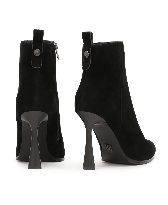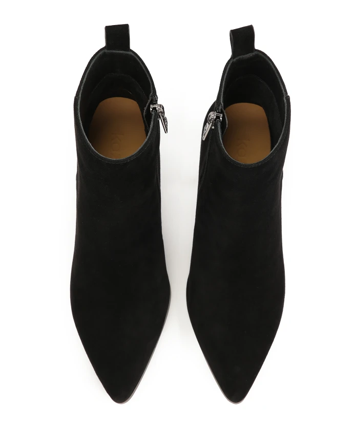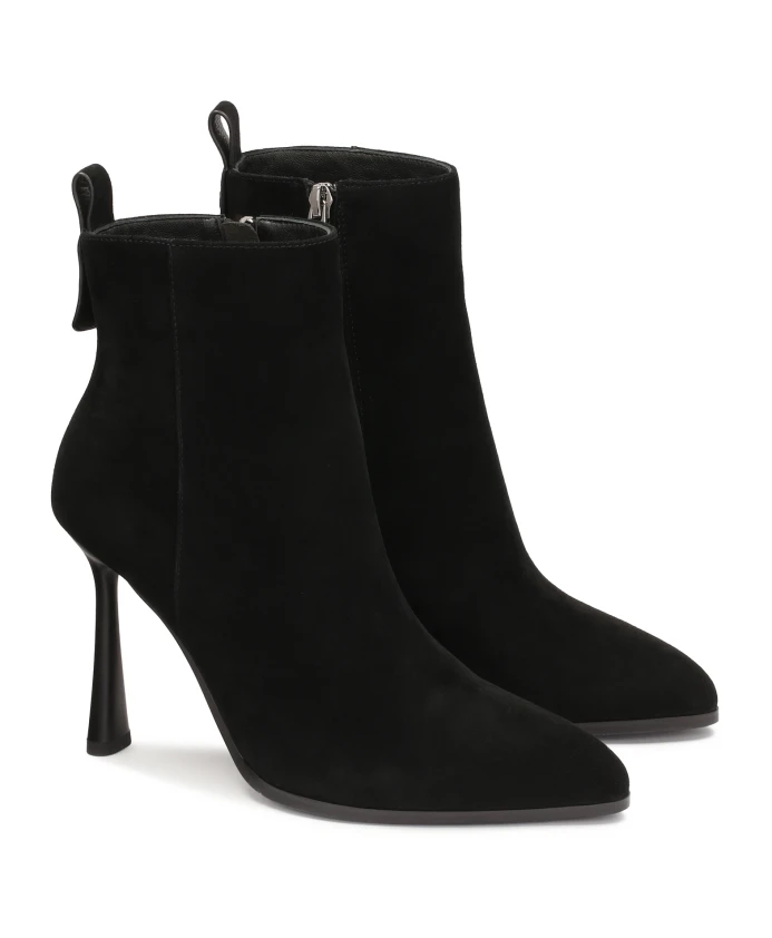 Черные замшевые ботинки – элегантная обувь, которая подойдет как для повседневной носки, так и для особых случаев. Узкая шпилька придает ботинкам женственность и делает силуэт выше и стройнее. Заостренные носы придают ботинкам современный и стильный характер и визуально удлиняют стопу. Замшевые ботинки хорошо сочетаются с разными стилями: от элегантных платьев до джинсов и кожаных курток, придавая любому наряду нотку шика и изысканности. Подкладка из мягкой полуанилиновой овчины гарантирует высокий комфорт, а тканевая меховая подкладка создает ощущение тепла в холодные дни.