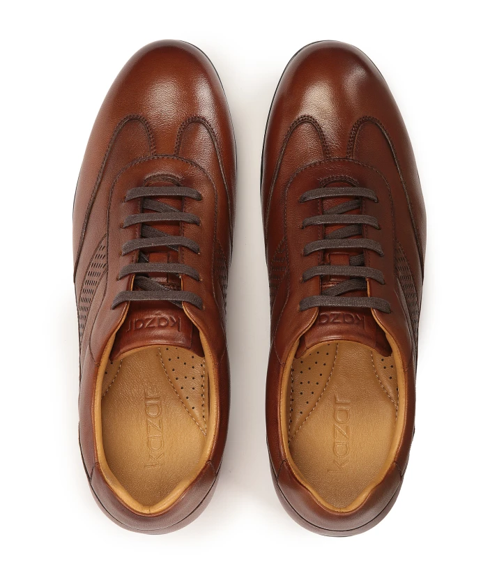 Коричневые полуботинки из высококачественной лицевой кожи впечатляют не только своим внешним видом, но и высоким уровнем комфорта. Их неформальный характер делает их подходящими как для повседневного городского стиля, так и для более формальных случаев, например, в офисе. Гладкая кожа в сочетании с перфорацией выглядит очень эффектно и шикарно. Внутренняя подкладка обуви, обитая овчиной, гарантирует гигиенические условия и высокий уровень комфорта.