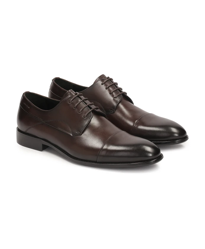 Коричневые лоферы мужские в костюме – идеальный выбор для мужчин, которые хотят добавить в свой гардероб изысканности и оригинальности. Туфли дерби с открытым носком из высококачественной лицевой кожи излучают роскошь и долговечность. Коричневые ботильоны – самая элегантная и универсальная мужская обувь, которая хорошо сочетается с большинством цветов одежды и идеально подходит для официальных нарядов. Внутренняя подкладка обуви, обшитая овчиной, гарантирует гигиенические условия и высокий комфорт.