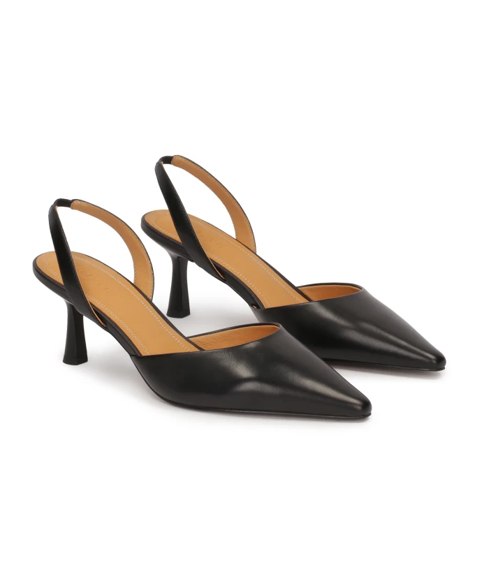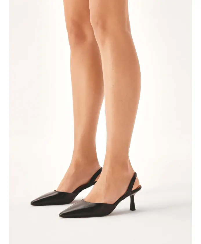 Черные кожаные туфли с вырезом сверху и открытым каблуком — это выражение класса, элегантности и функциональности в одном лице. Минималистичный дизайн и отсутствие застежек делают их идеальным выбором для активных женщин, ценящих изысканный стиль и комфорт. Верх из высококачественной лицевой кожи тонко подчеркивает стопу и придает легкости общему стилю. Черный цвет придает обуви вневременной характер и делает ее универсальным элементом делового дресс-кода. Подкладка из полуанилиновой овчины обеспечивает исключительный комфорт благодаря отличным свойствам поглощения влаги. Тонкая кожаная подошва отличается прочностью и эстетичным внешним видом.