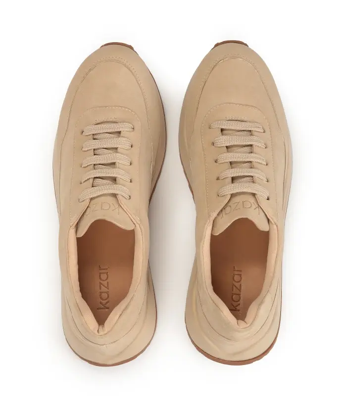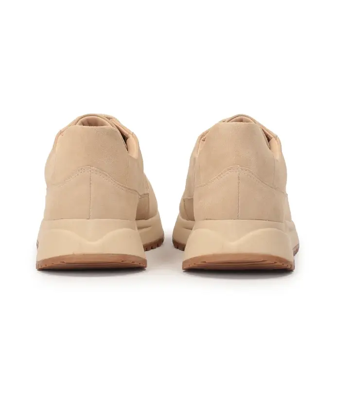 Женские кроссовки из качественной замши нейтрального бежевого цвета характеризуются простым кроем и удобной конструкцией. Верхний материал без лишнего декора исключительно аккуратно лежит на ноге. Подошва с протектором амортизирует стопу и обеспечивает комфорт при ходьбе. Минималистичные кроссовки идеально подходят для повседневного повседневного образа. Подкладка из полуанилиновой овчины обеспечивает исключительный комфорт благодаря отличным свойствам поглощения влаги.
