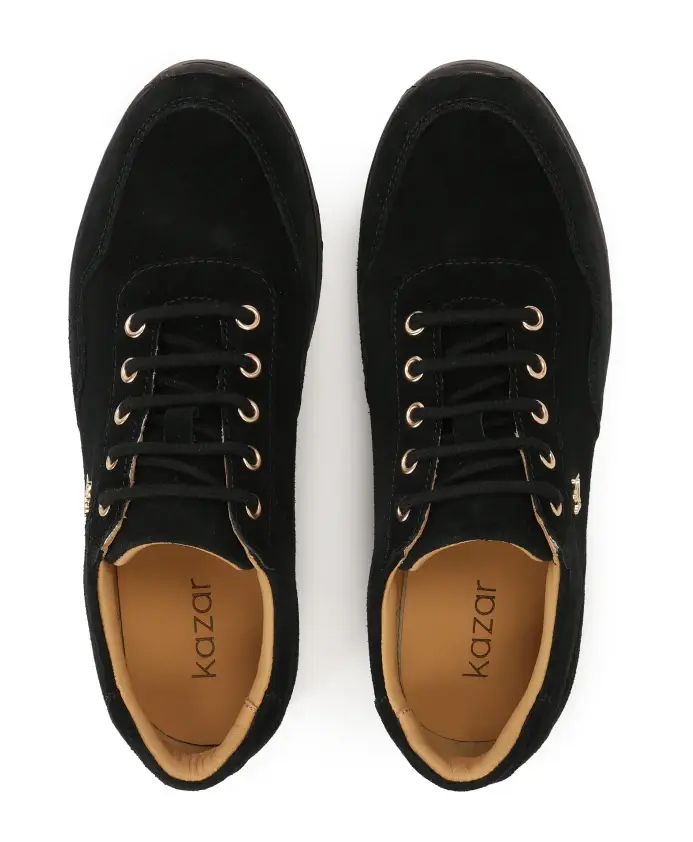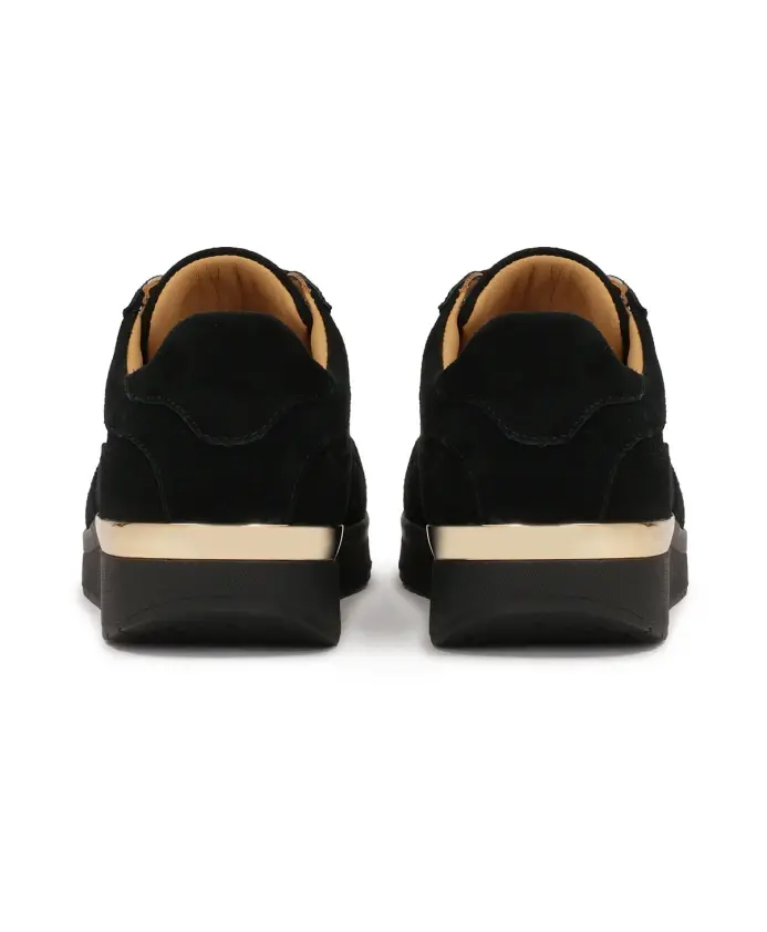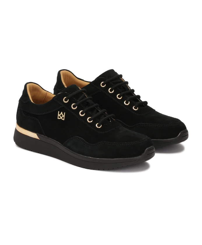 Кроссовки, выполненные из черной замши, излучают утонченный стиль и утонченность. Минималистский дизайн в сочетании с высококачественными материалами делает их не только чрезвычайно стильными, но и чрезвычайно элегантными. Поднятая подошва не только увеличивает высоту, но и устойчивость, делая каждый шаг безопасным и плавным. Черный цвет замши придает обуви универсальность и делает ее подходящей для самых разных случаев. Внутренняя подкладка обуви из овчины гарантирует гигиенические условия и высокий комфорт.